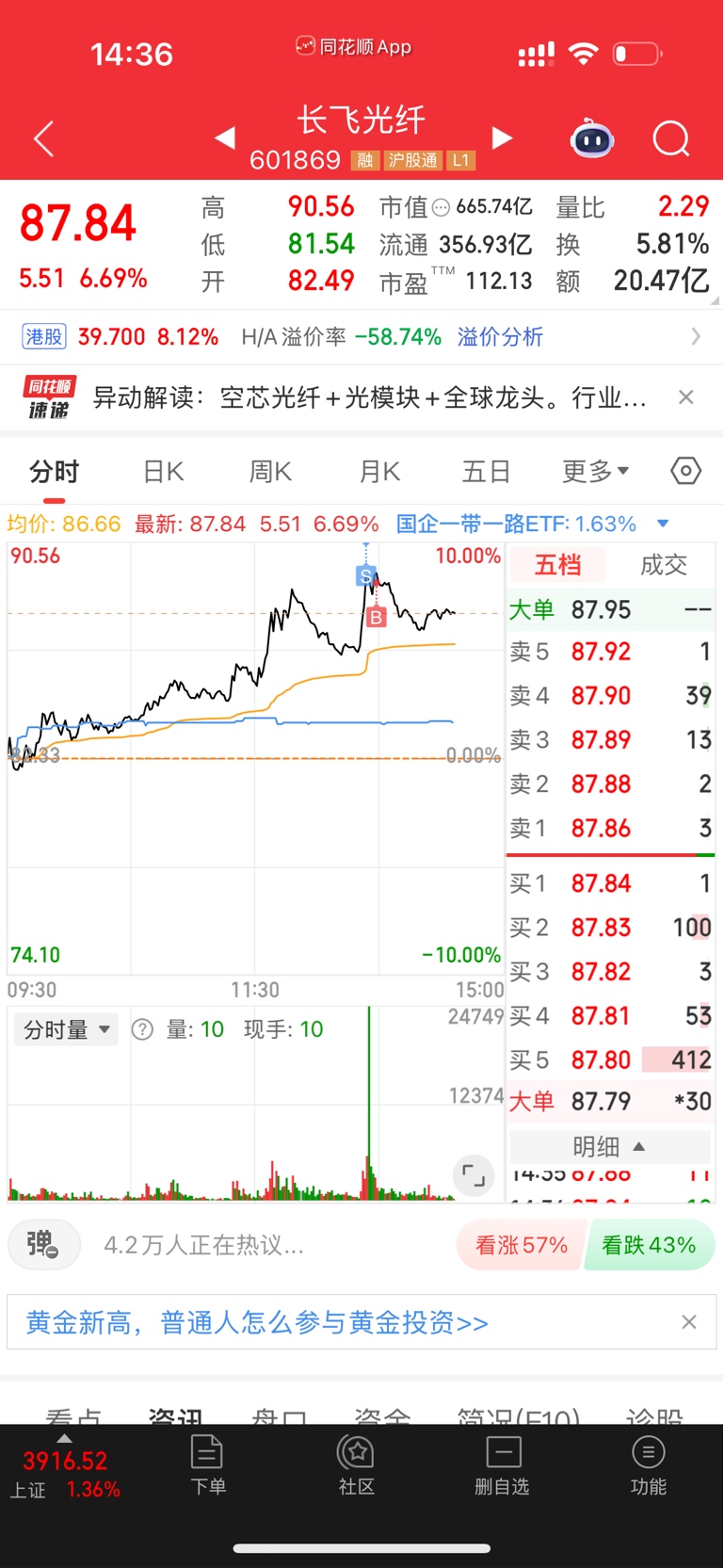 $长飞光纤(SH601869)$ 挂涨停出了,然后8个点又买了回来,这波操作真无语