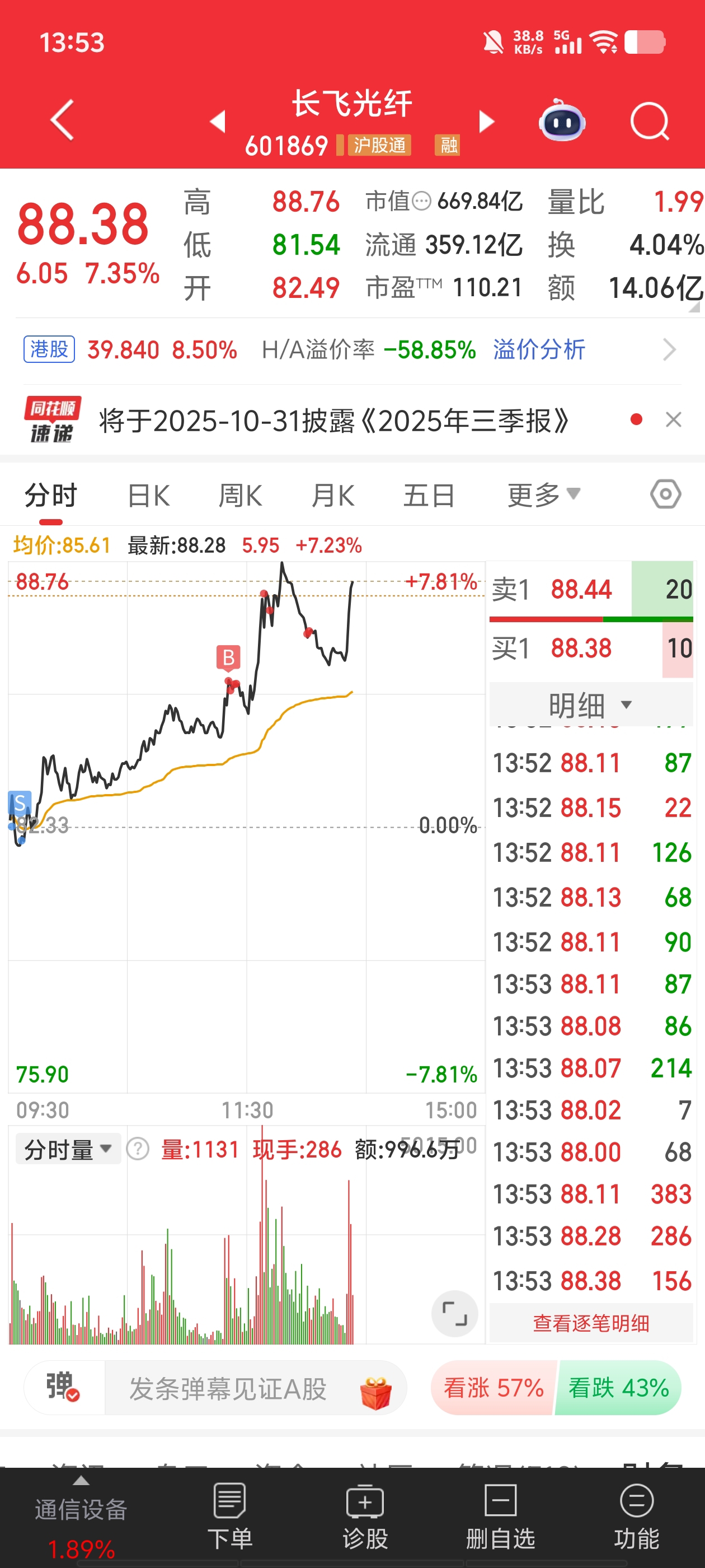 $长飞光纤(SH601869)$ 在你儿子博创上面赚了不少,该你这个爹表现了