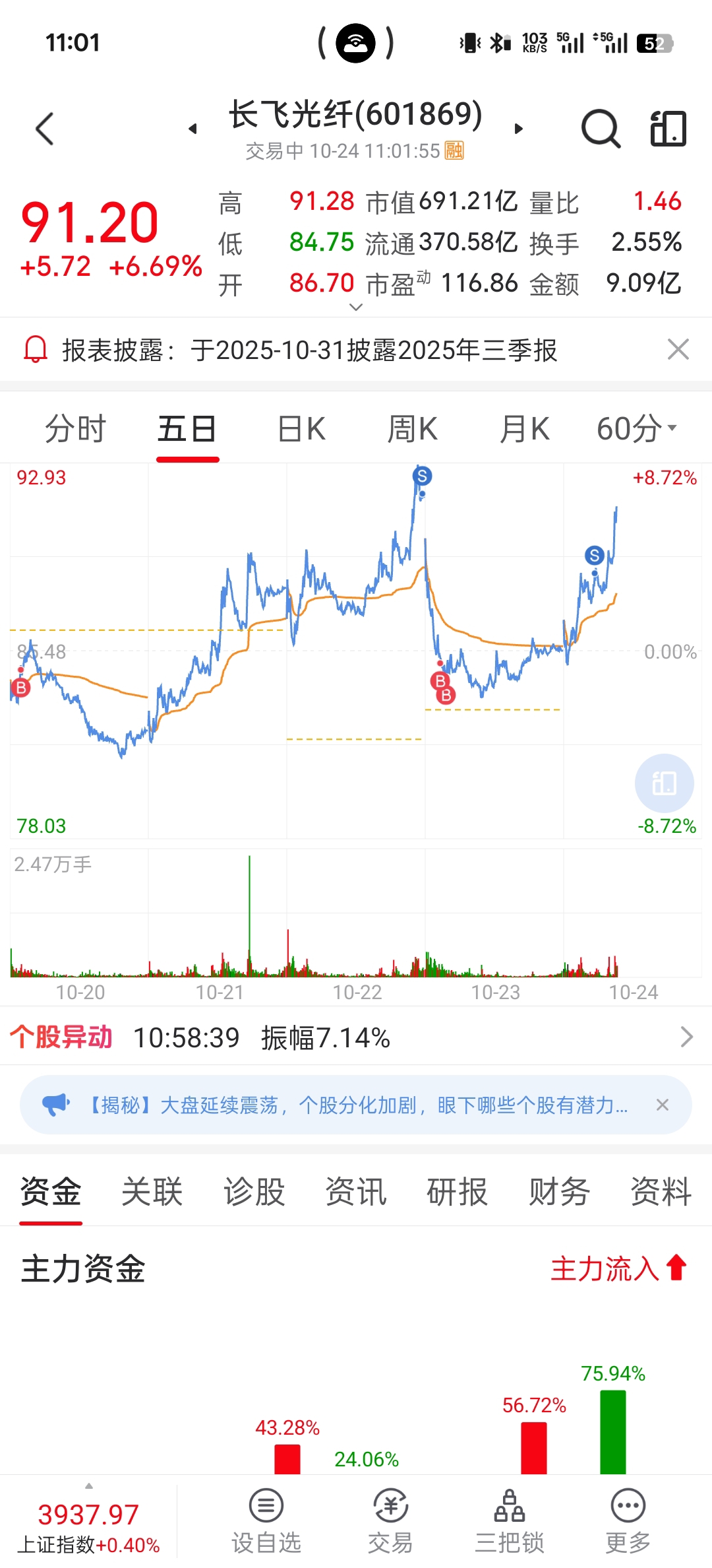 $长飞光纤(SH601869)$ 快来恭喜我,t飞了