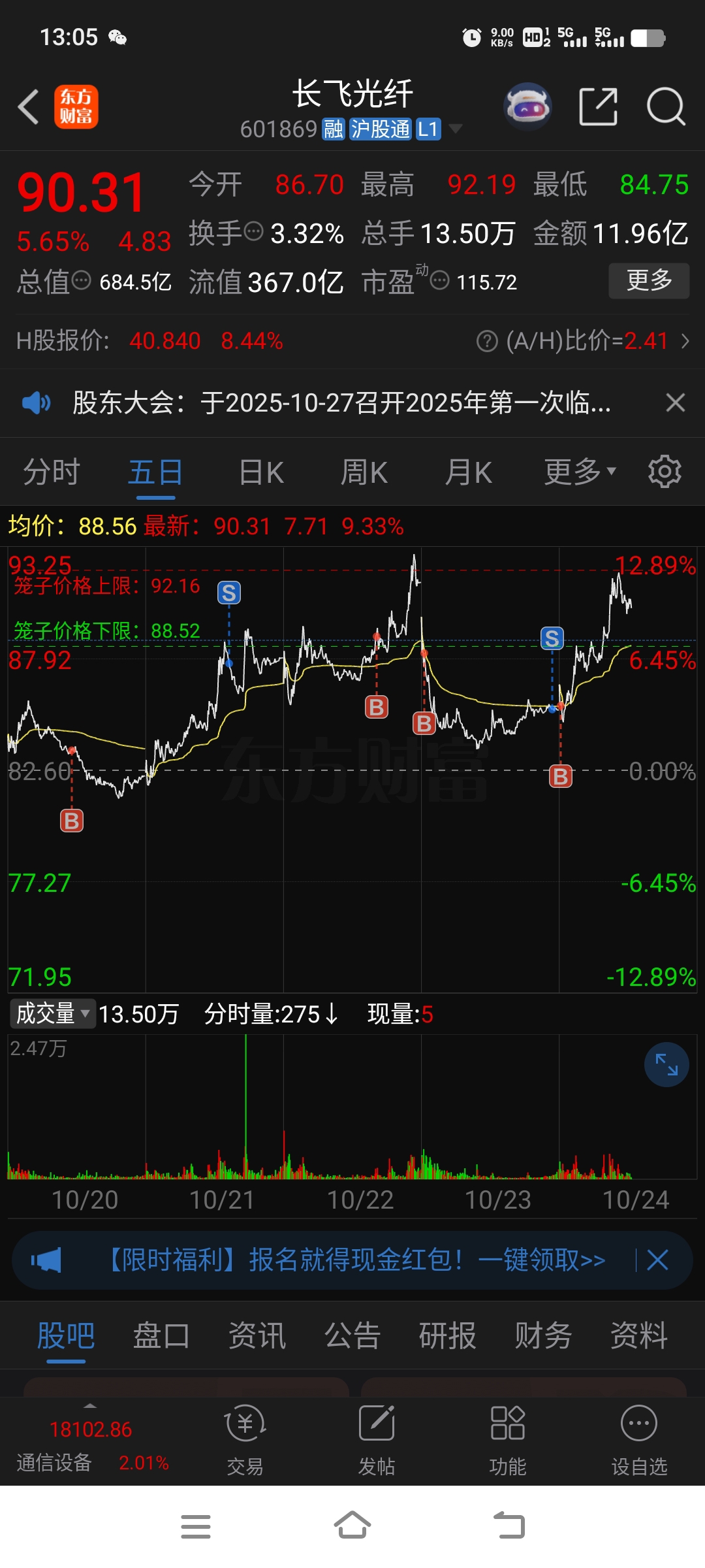 $长飞光纤(SH601869)$ 幸好早上,接回来了