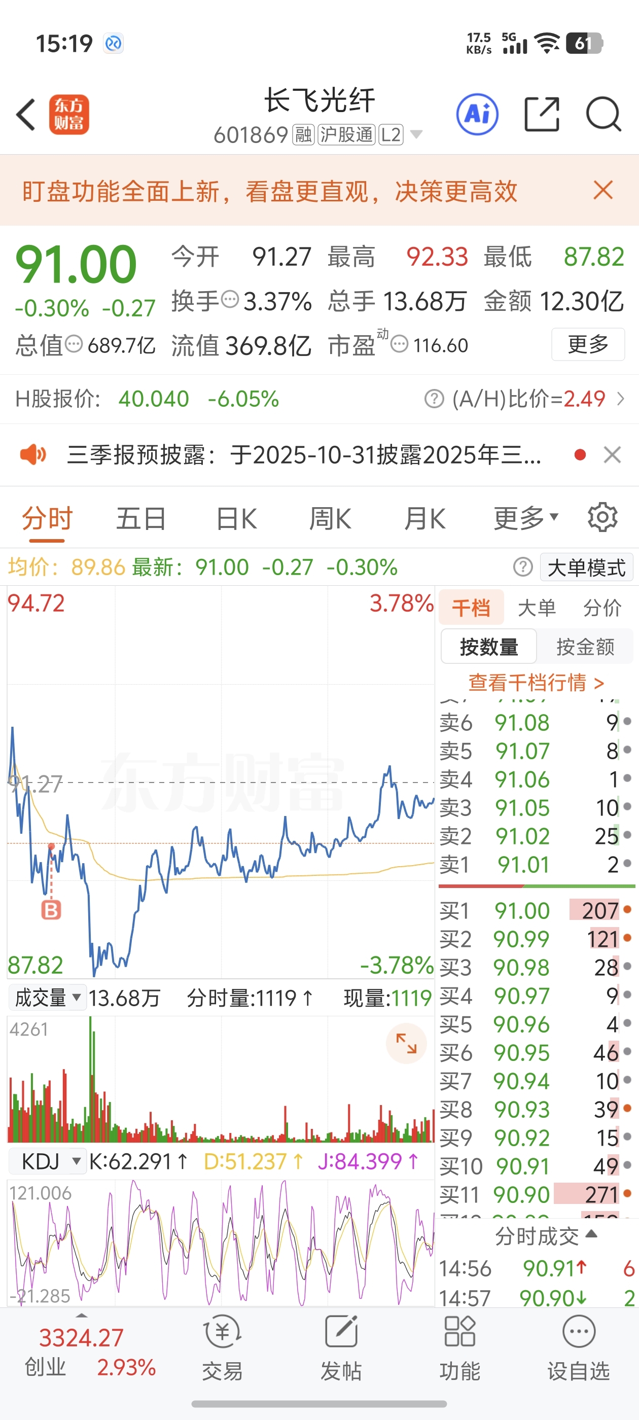 $长飞光纤(SH601869)$ 知道你业绩不行还是买一点。毕竟今年在你身上赚了不少。今晚港股那边就会出业绩了。只要不是太差就继续持有