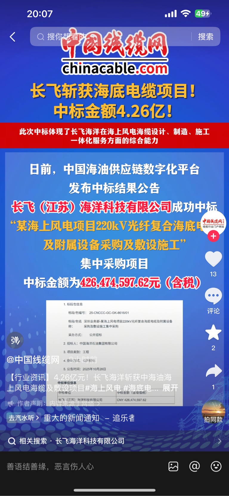 $长飞光纤(SH601869)$ 发个利好缓缓