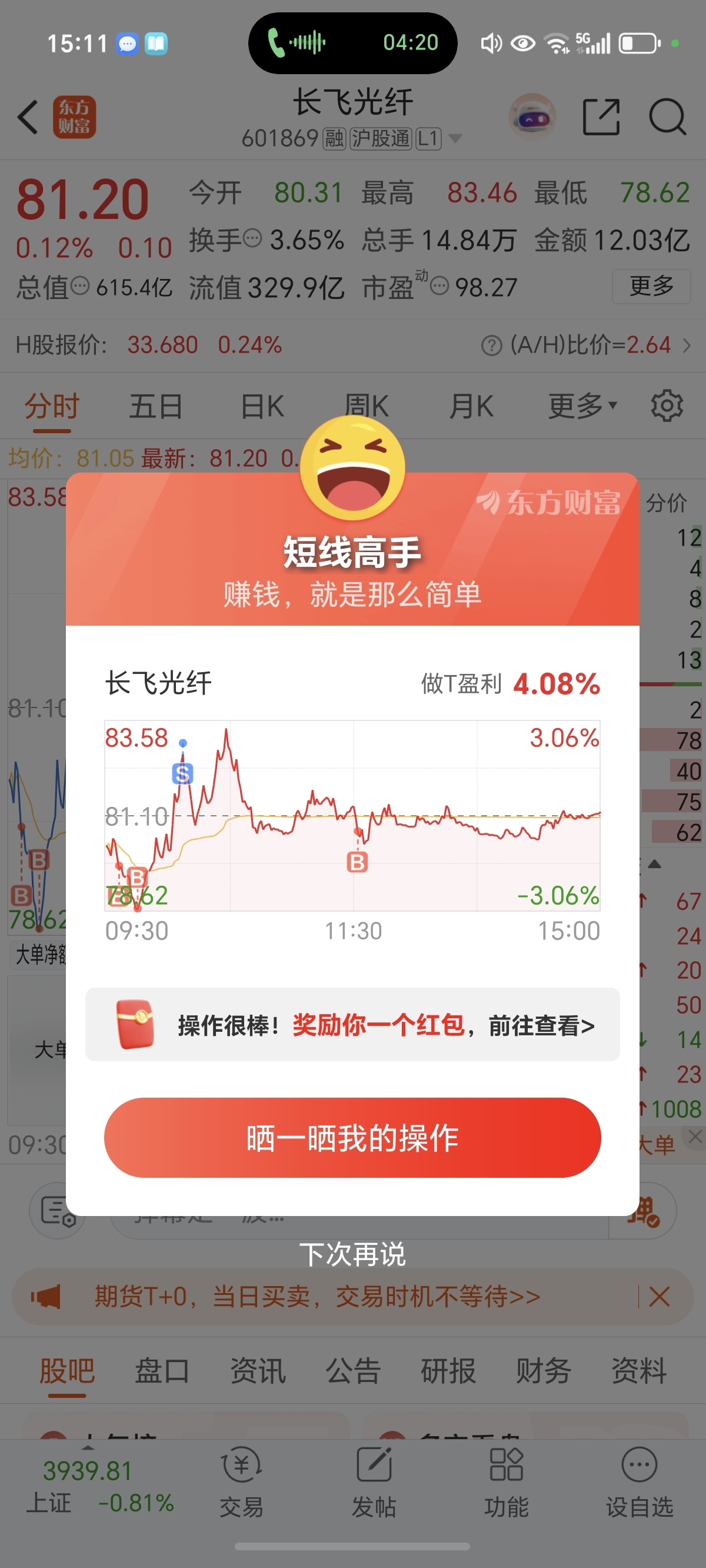 $长飞光纤(SH601869)$ 简直不能格局!120跑的,90接回来,t到81.9了,明天放我出去!!!