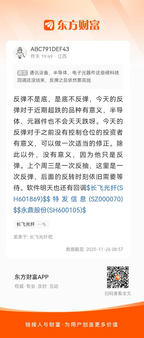 上星期五说了指数这一次的回调大概在3810点上下10个指数点,昨天的最低点是3816点,还是在意料之中的,说了会反弹三五天,今天是反弹的第2天,今天虽然涨了33个点,但是成交量不够,个人认为大概就是反弹三天左右,反弹之后后面会不会再次跌破3800后面我们再说。目前就是走一步看一步,上星期五还说了快速下跌之后会迎来大于30个点的阳线,今天指数上涨33个点,这也是在意料之中的,而且还说了昨天会是低开高走,昨天指数也就是探底回升走势,牛市当中就是这样的急跌慢涨,上星期五还说了这两天会是一片艳阳天的走势,昨天和今天盘中的上涨的个股都超过了4000家,明天开始个股会出现分化。https://caifuhao.eastmoney.com/news/20251122094011672550560