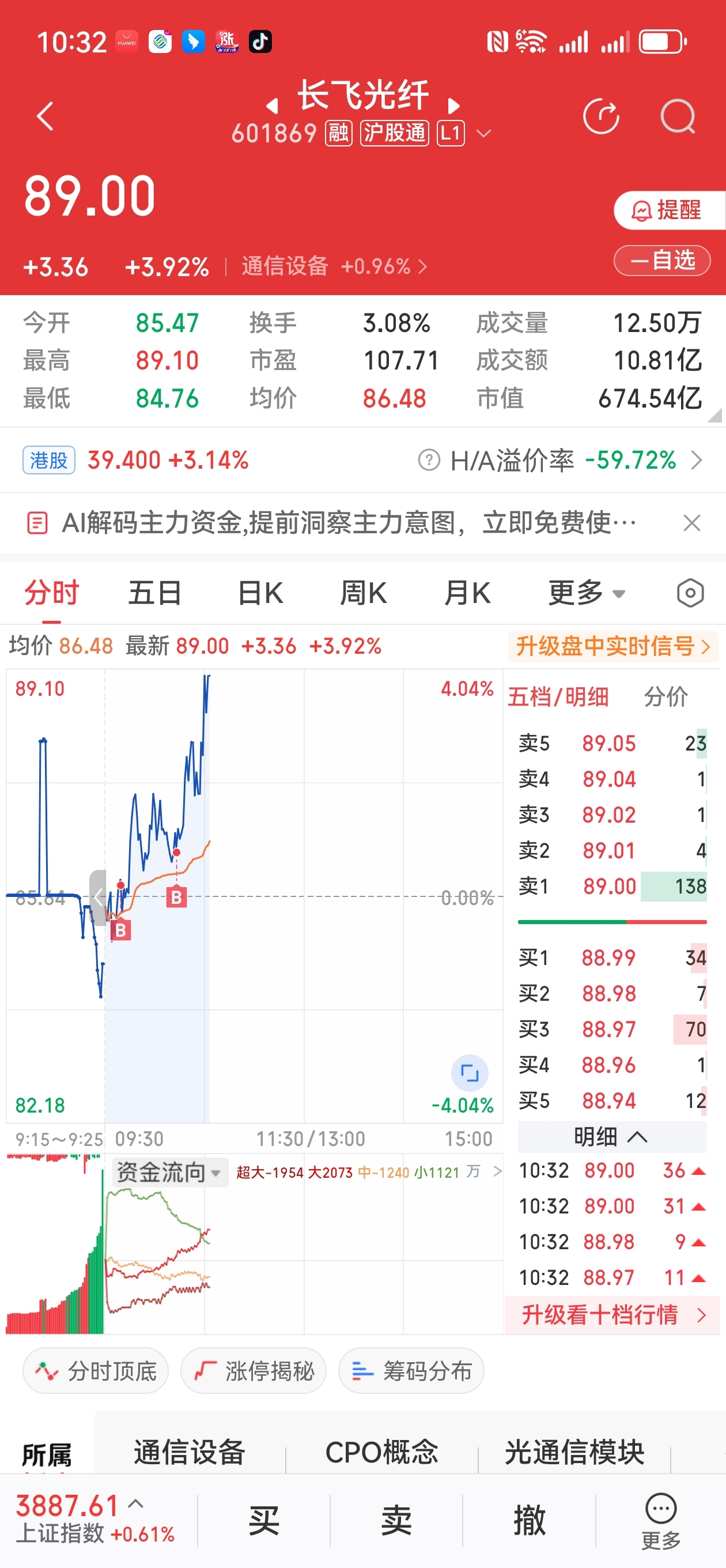 $长飞光纤(SH601869)$ 昨天涨停没走,今天又调仓到这里来。前两天大洗盘,你们还怕什么?