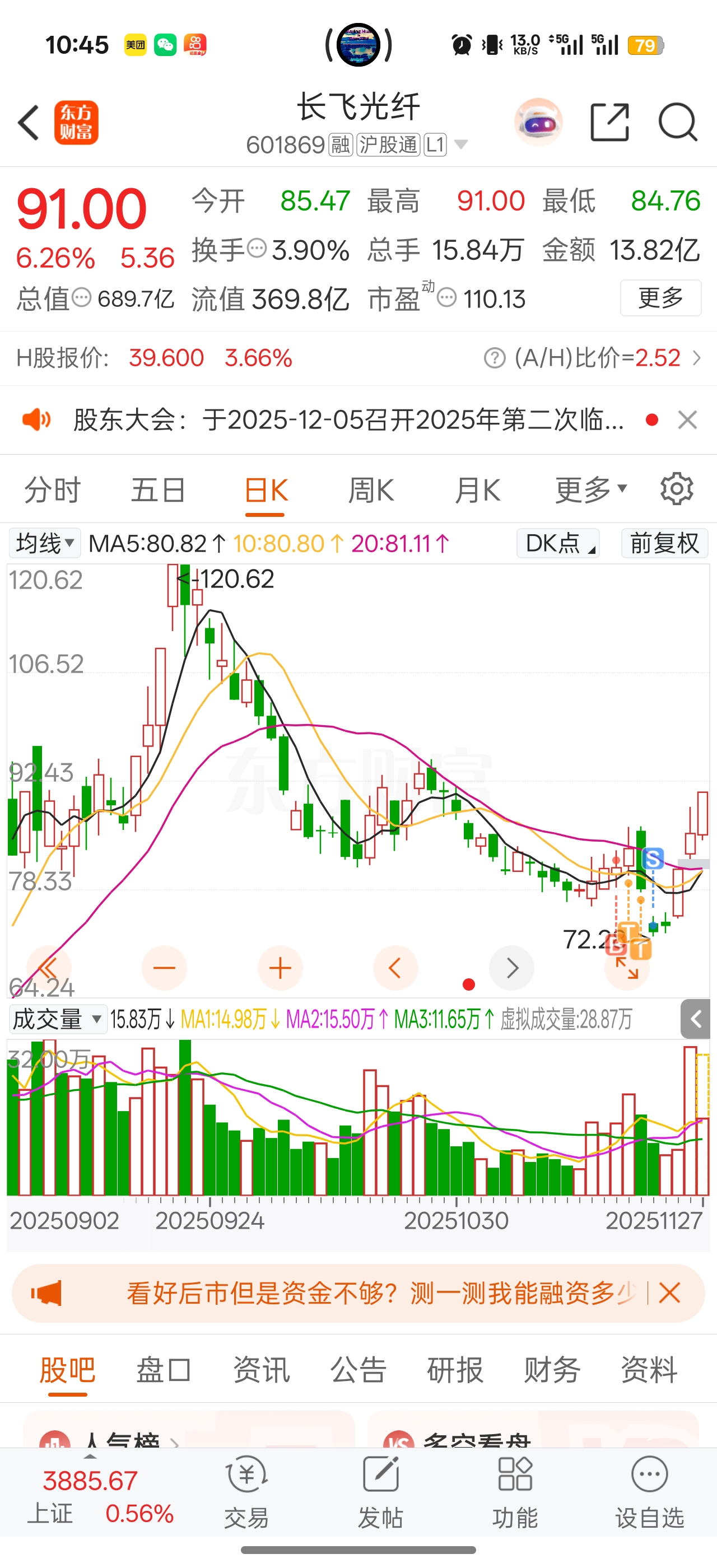 $长飞光纤(SH601869)$ 难受,成本82买入的,74割的