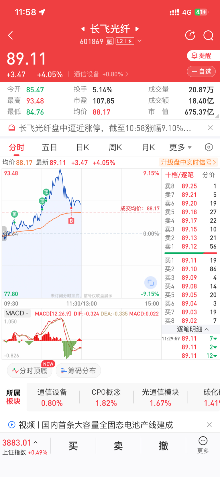 $长飞光纤(SH601869)$ 今天刚进场,不要套我啊,拉上去!