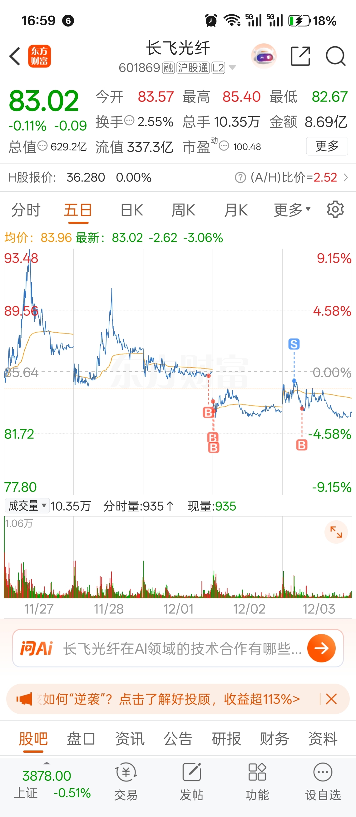 $长飞光纤(SH601869)$ t一下持股数不变,下次买入位置81,卖出位置88,今天没有大操作,继续持有