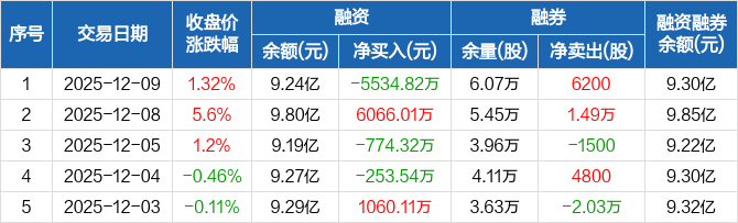 长飞光纤:融资净偿还5534.82万元,融资余额9.24亿元(12-09)