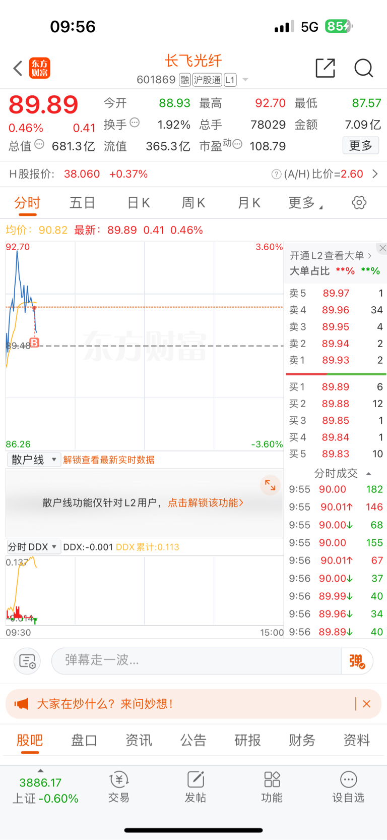 $长飞光纤(SH601869)$ 十秒亏了一个点