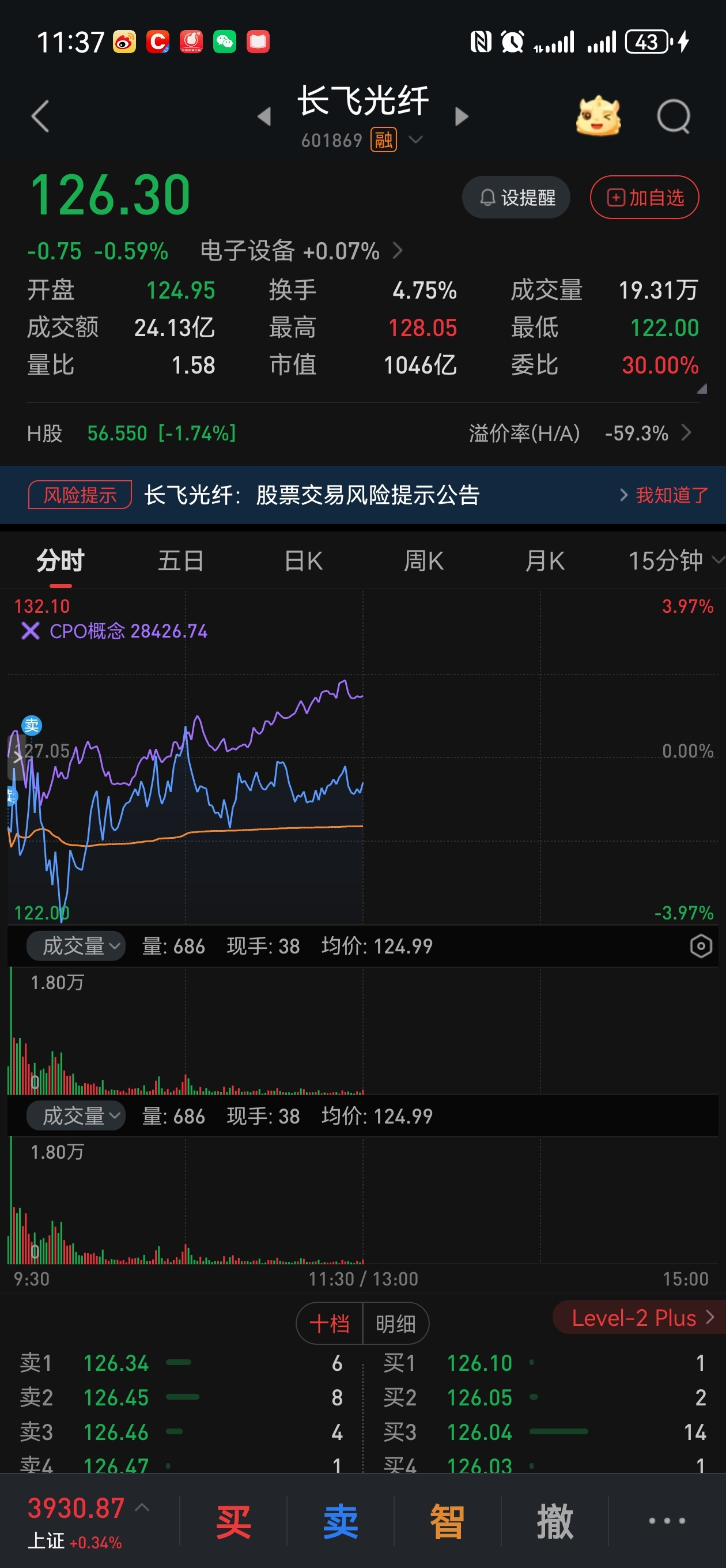 $长飞光纤(SH601869)$ 别急,它在等五日线呢?早上清仓,明天接回来。