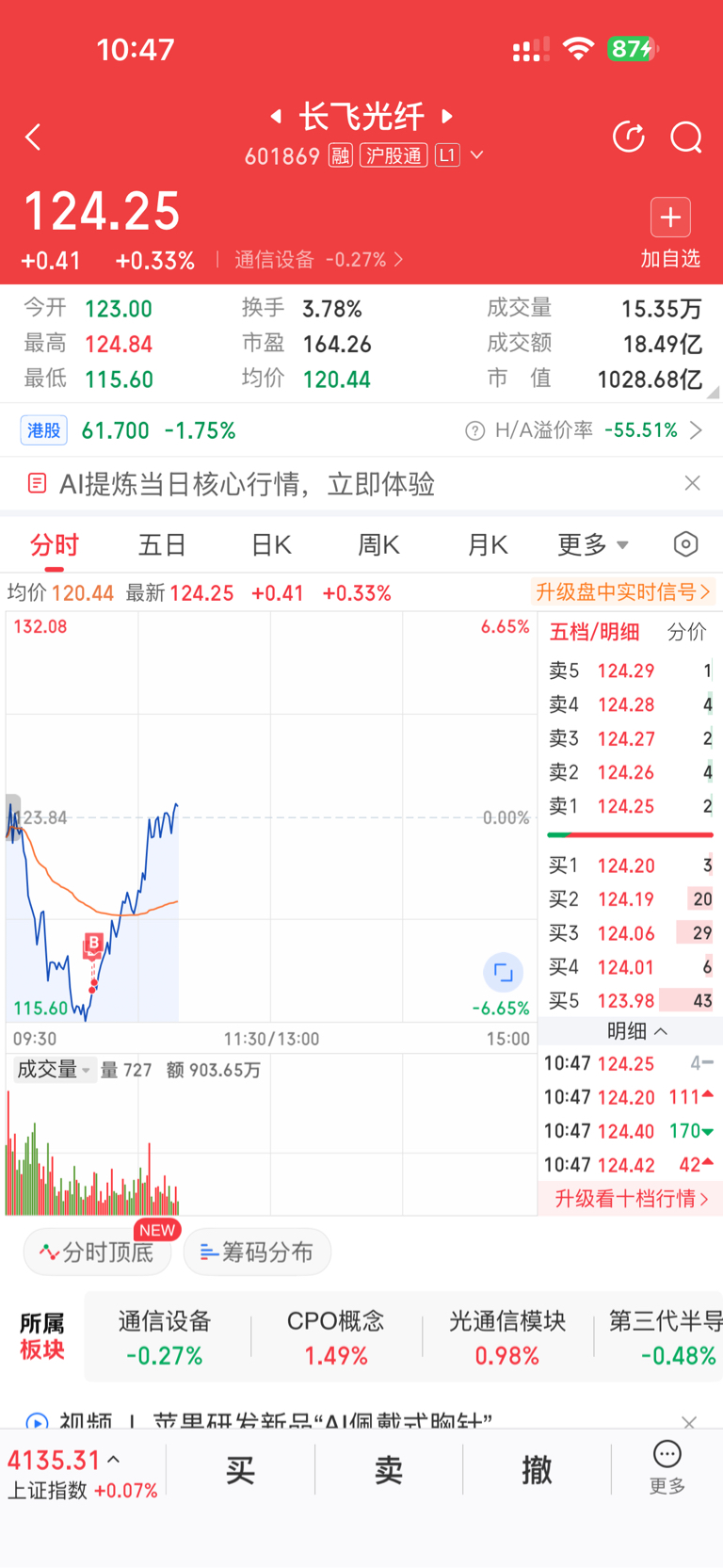 $长飞光纤(SH601869)$ 早上低点满仓了