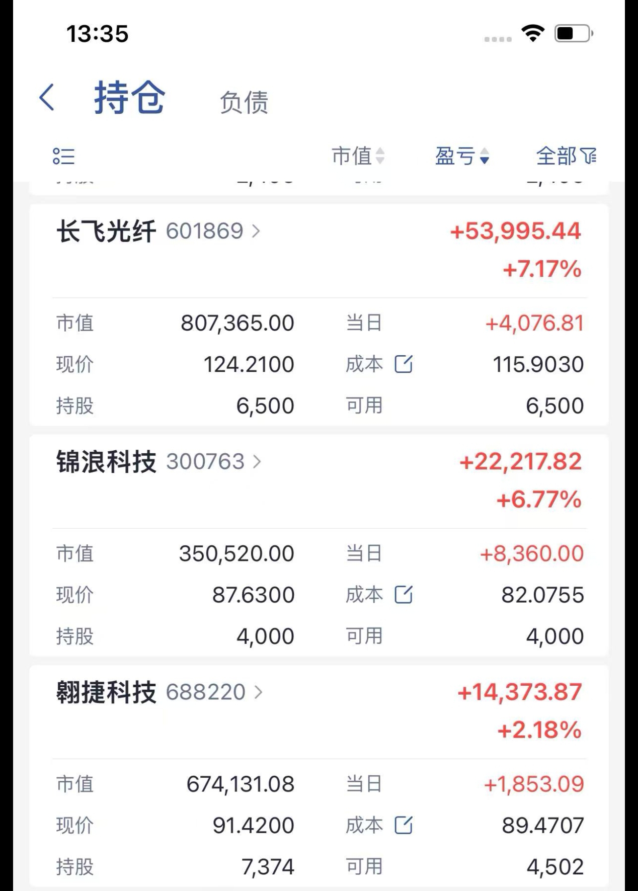 $长飞光纤(SH601869)$ 介入的成本太高了,今天红盘减仓了不少把成本降低点,希望能再冲一下,拿住不容易