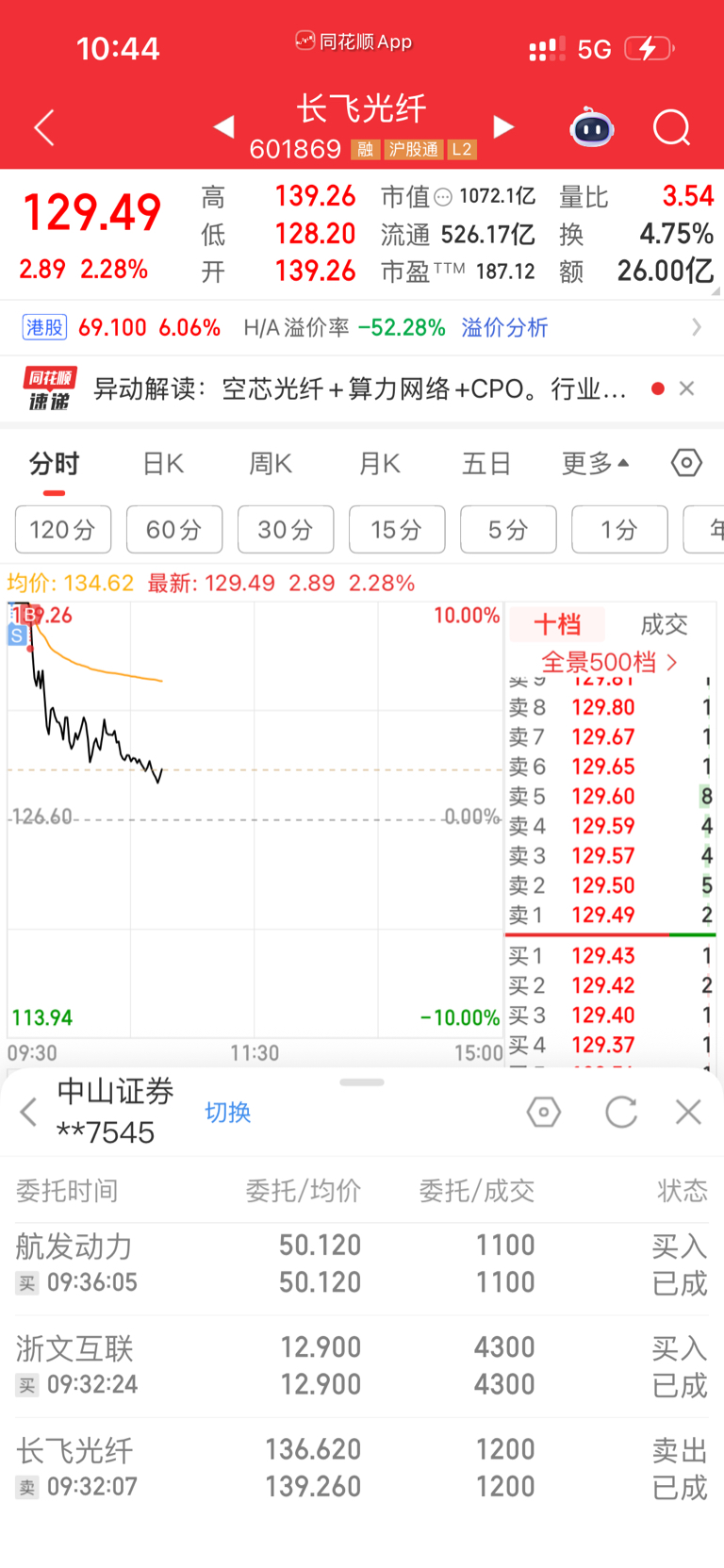 $长飞光纤(SH601869)$ 谢谢打板的,卖了大半,接了2手玩玩。