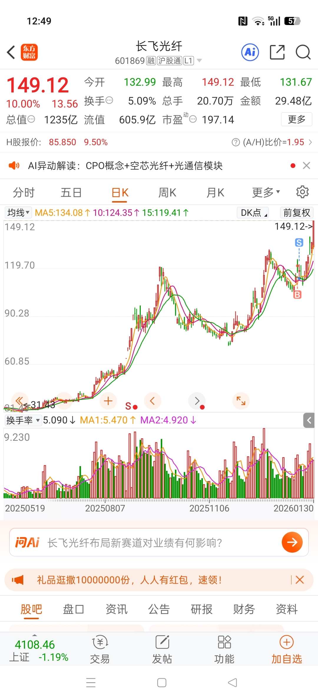 $长飞光纤(SH601869)$ 票是好票,时间没有选对