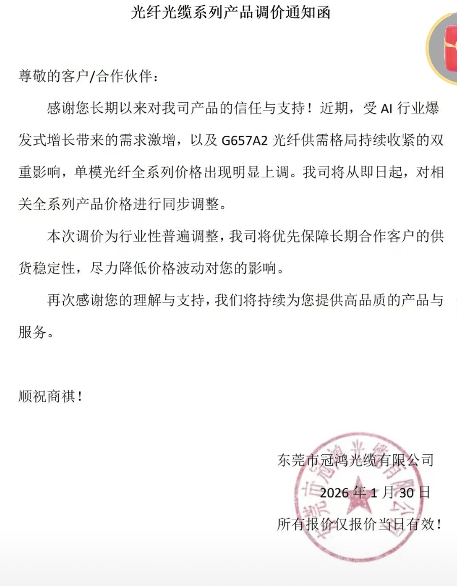 汇总一下光纤板块(长亨天)涨价函,由其是单模光纤,在ai数据中心的高速通信背景下