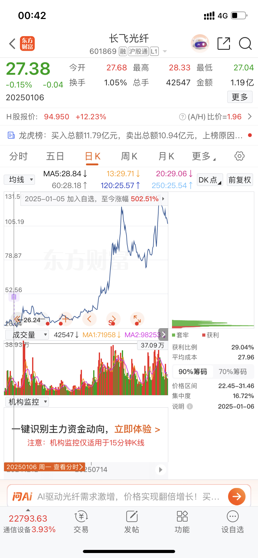 $长飞光纤(SH601869)$ 当初对你爱理不理,现在已经高攀不起