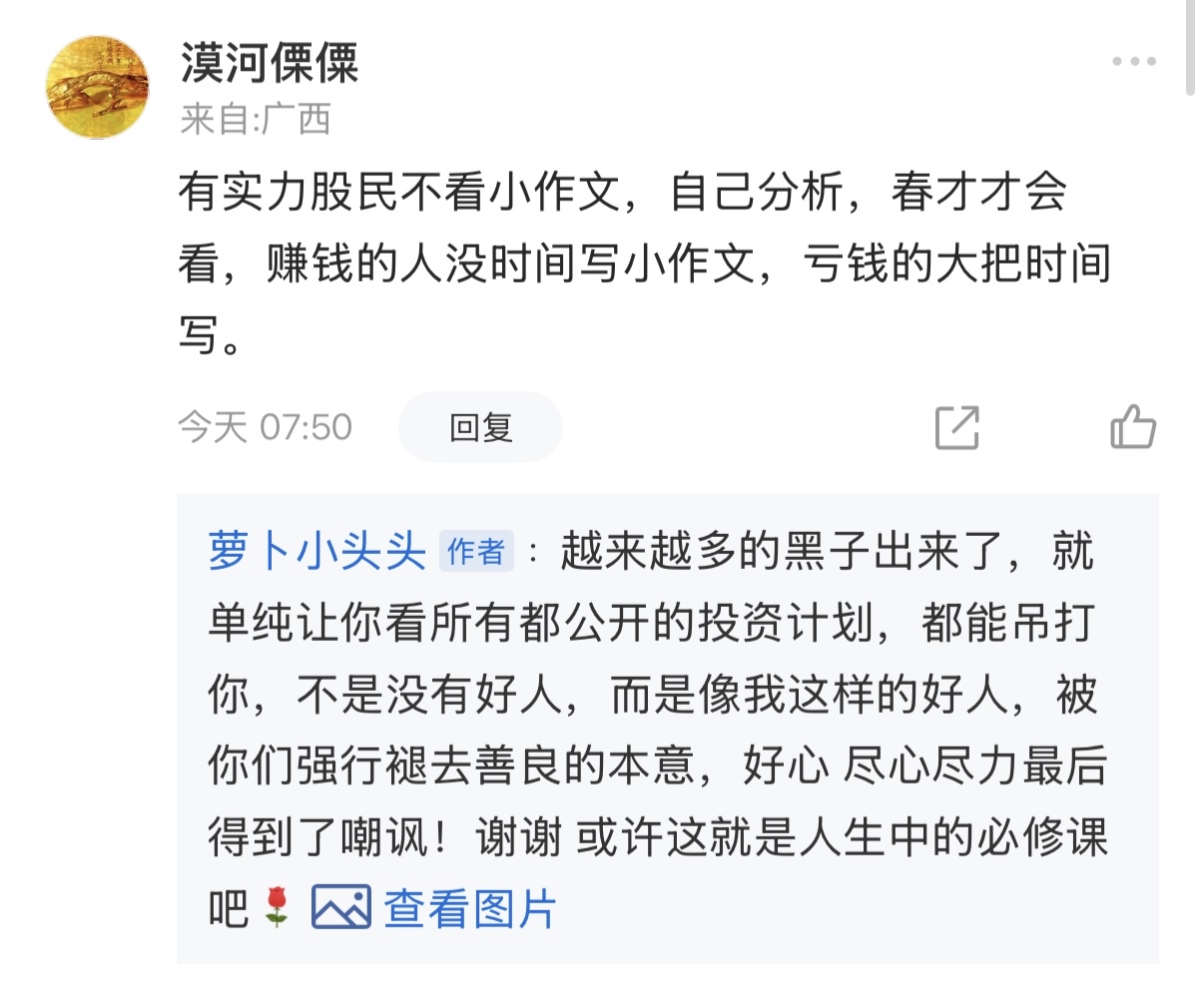 温馨提示: 1.根据《证券法》规定,禁止编造、传播虚假信息或者误导性信息,扰乱证券市场;2.用户在本社区发表的所有资料、言论等仅代表个人观点,与本网站立场无关,不对您构成任何投资建议。用户应基于自己的独立判断,自行决定证券投资并承担相应风险。《东方财富社区管理规定》