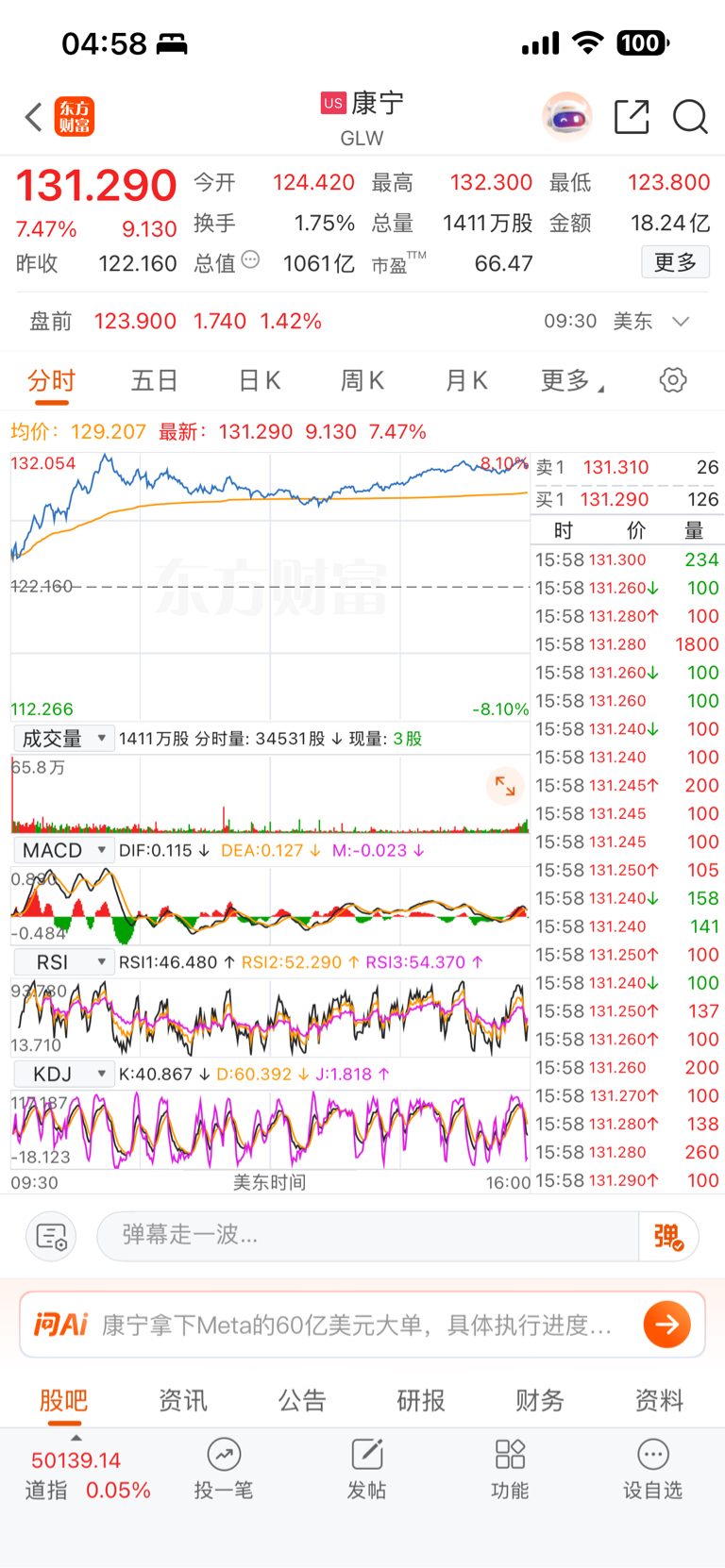 $长飞光纤(SH601869)$ 康宁又大涨,会跟着大涨吗