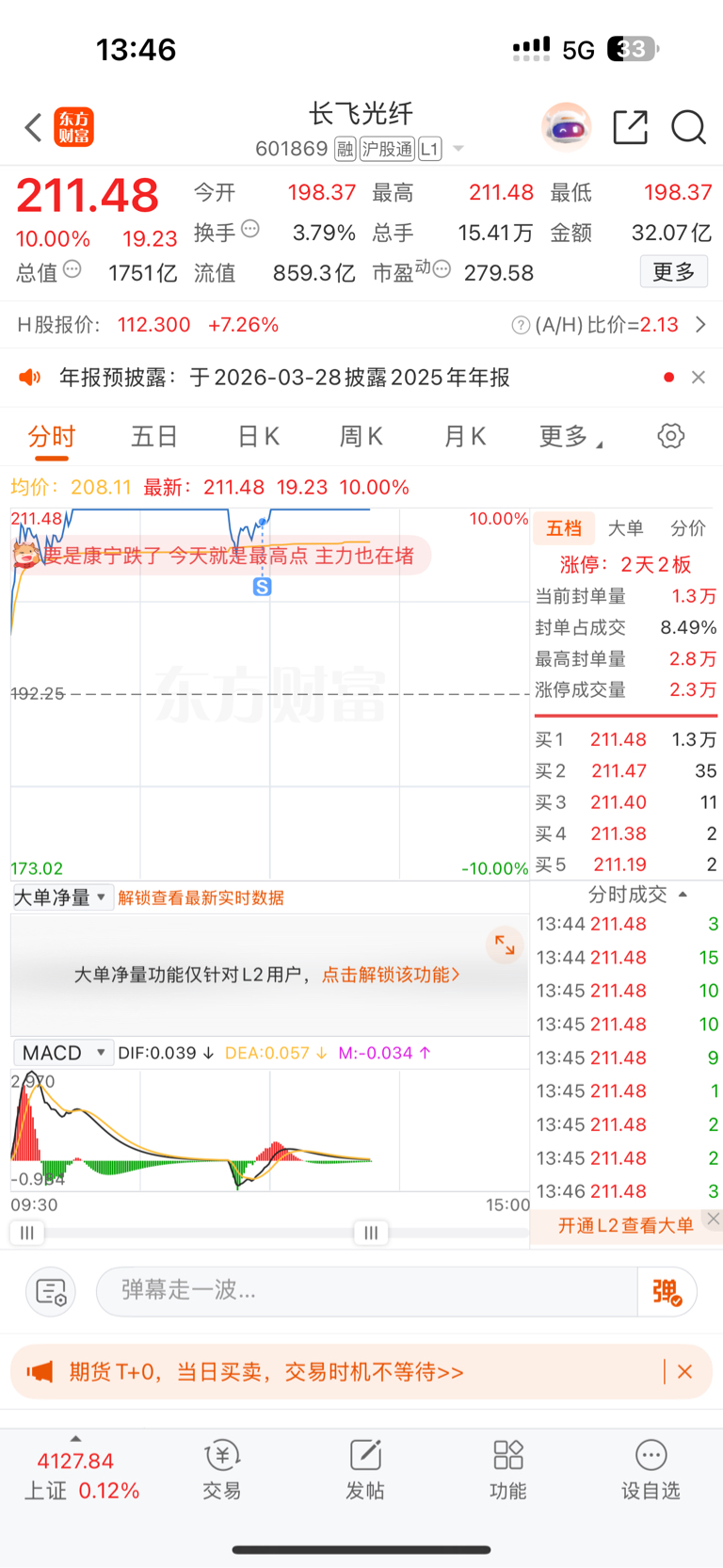 $长飞光纤(SH601869)$ 先走一步各位留下发财!