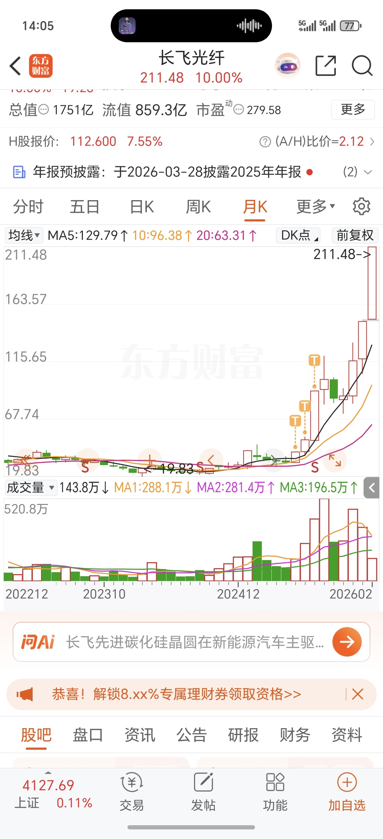 $长飞光纤(SH601869)$ 我在这股还是亏钱的