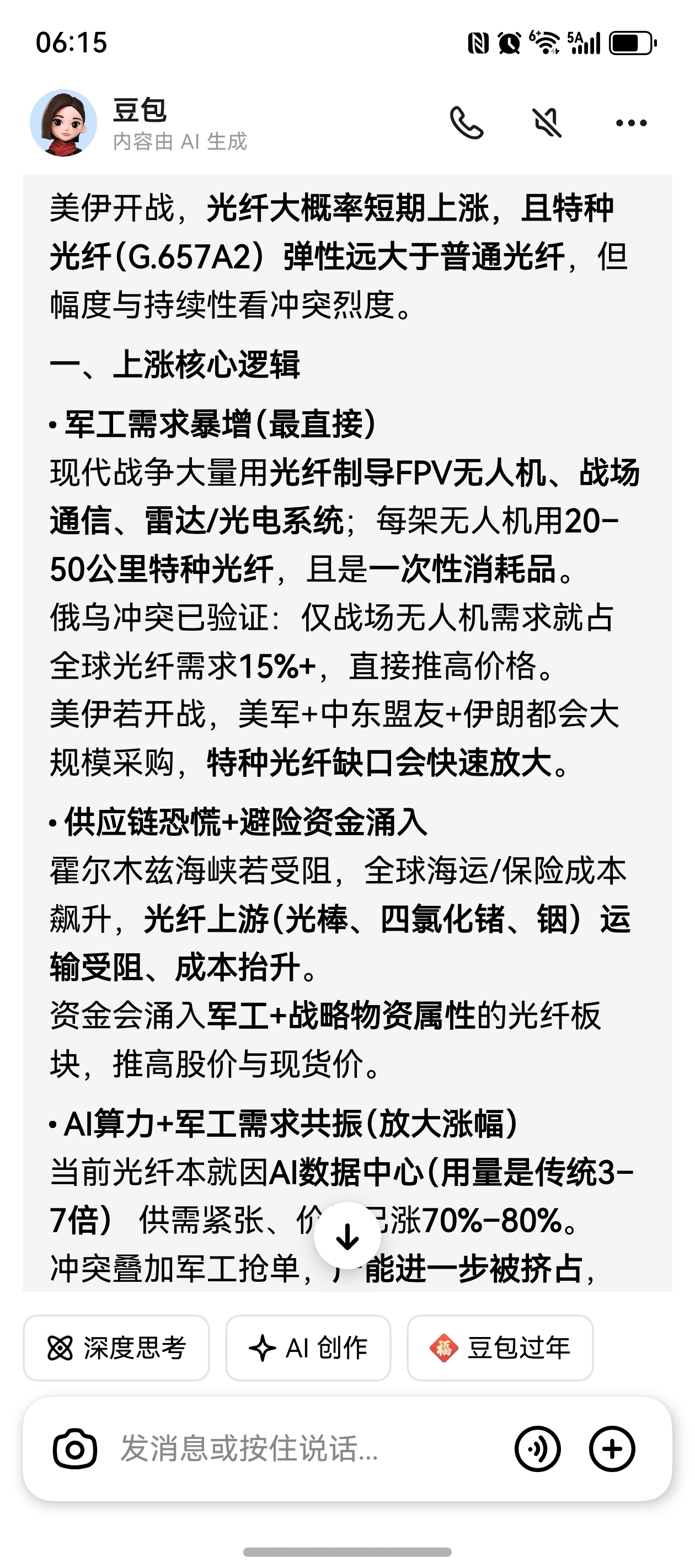 兄弟们豆包说得有道理,开战利好光纤!