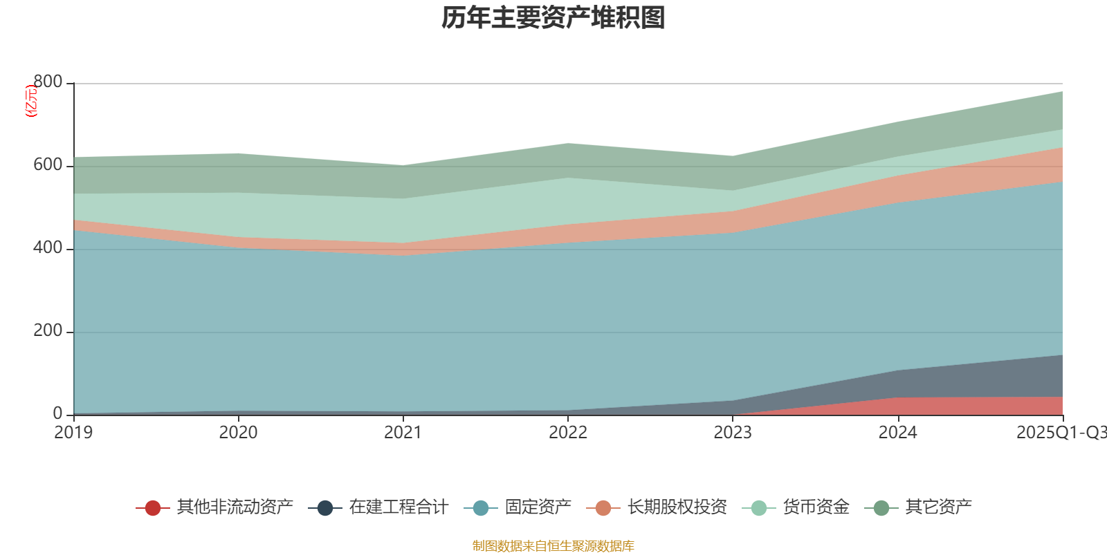 资产重大变化方面,截至2025年三季度末,公司在建工程合计较上年末增加54.05%,占公司总资产比重上升3.67个百分点;固定资产较上年末增加3.36%,占公司总资产比重下降3.65个百分点;长期股权投资较上年末增加26.85%,占公司总资产比重上升1.38个百分点;货币资金较上年末减少5.27%,占公司总资产比重下降0.92个百分点。