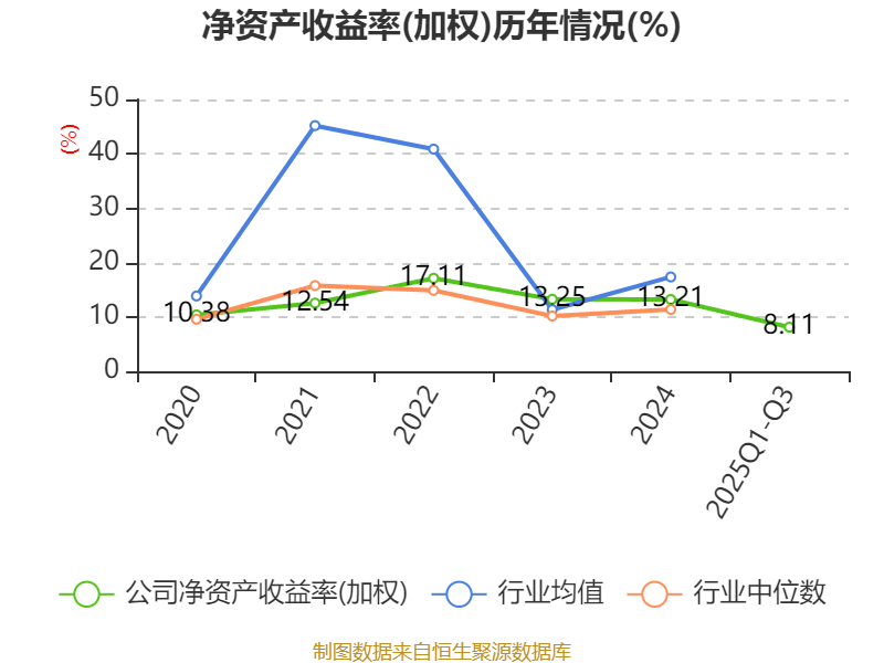 盈利能力方面, 2025年前三季度公司加权平均净资产收益率为8.11%,同比下降0.82个百分点。公司2025年前三季度投入资本回报率为5.95%,较上年同期下降1.06个百分点。