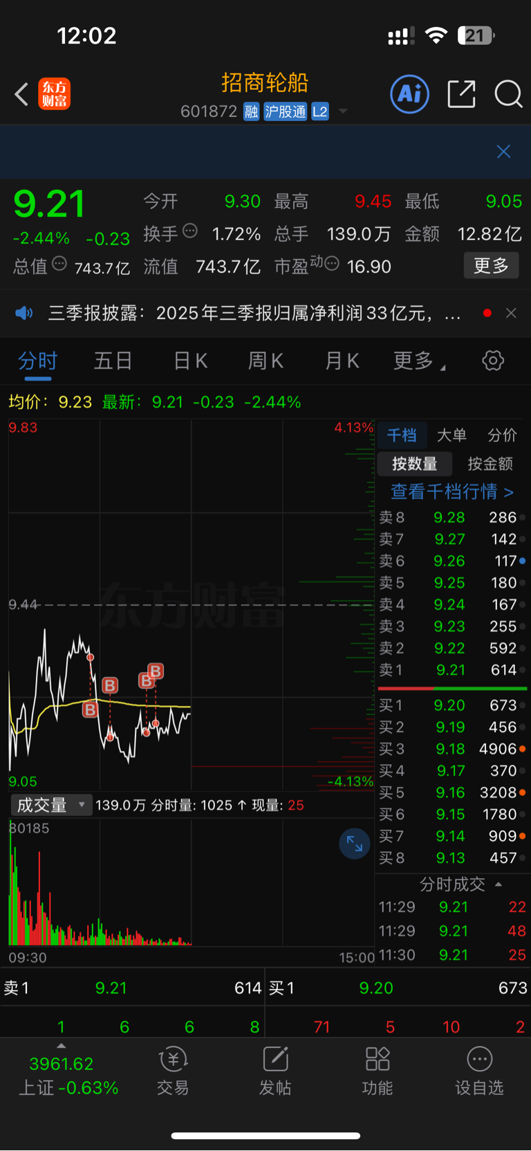$三花智控(SZ002050)$ $招商轮船(SH601872)$ 满仓满融打满了!现在高低切!三花昨天业绩不错竟然拉不动,果断走了,高位利好不拉升就是利空!