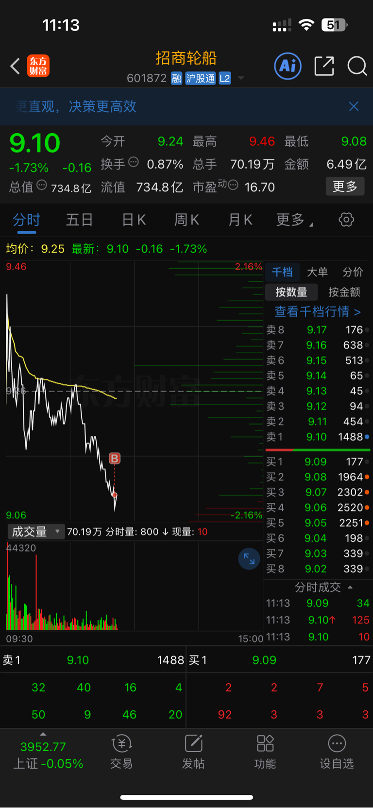$招商轮船(SH601872)$ 没到点位不走,刚才加仓了!