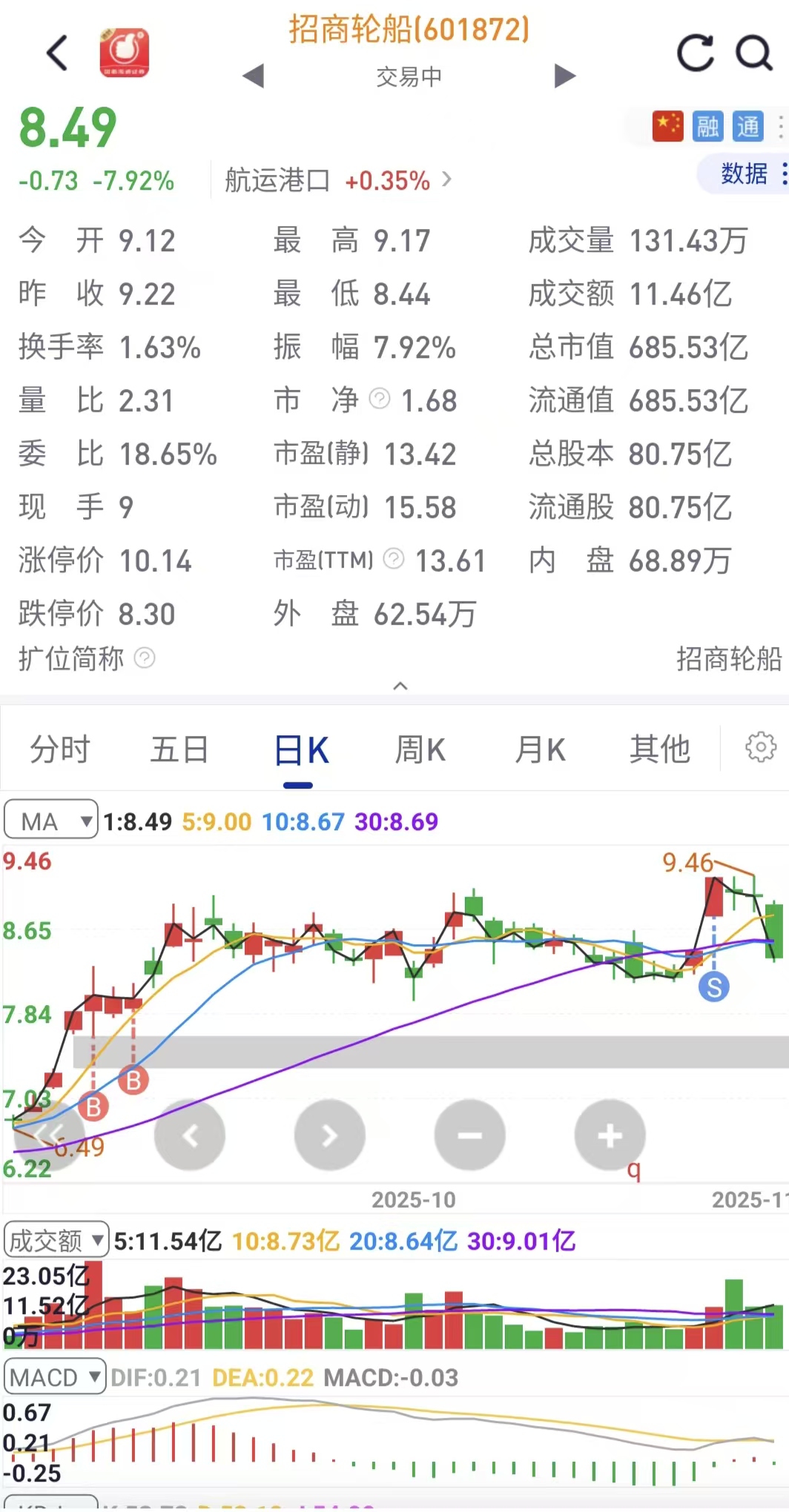 $招商轮船(SH601872)$ 涨停那天我卖出,内心无比挣扎。心想会不会卖了后还会大涨几天