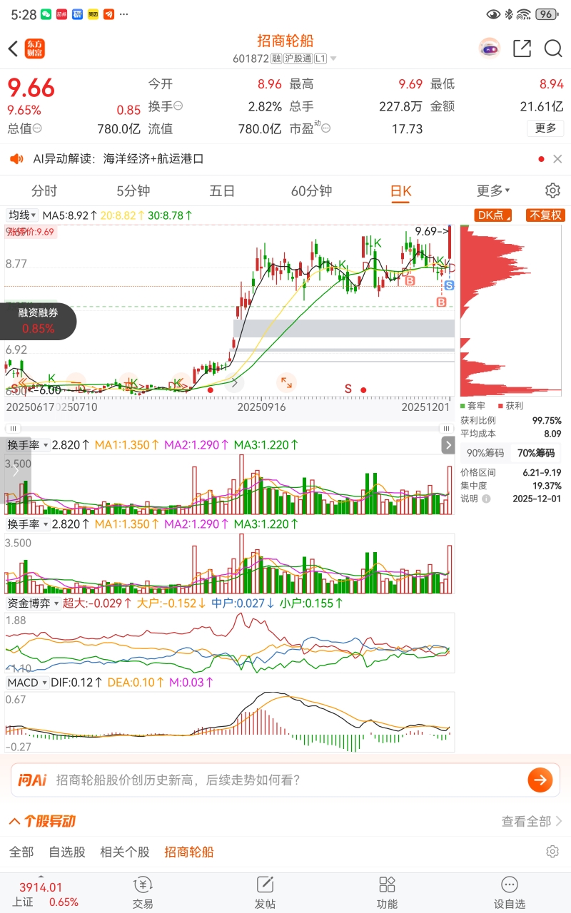 $招商轮船(SH601872)$ 走了半仓,谢谢大哥没埋我,明天低开点继续捧场
