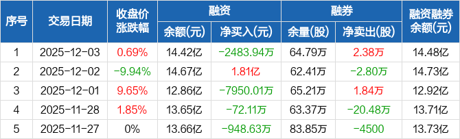 招商轮船:融资净偿还2483.94万元,融资余额14.42亿元(12-03)