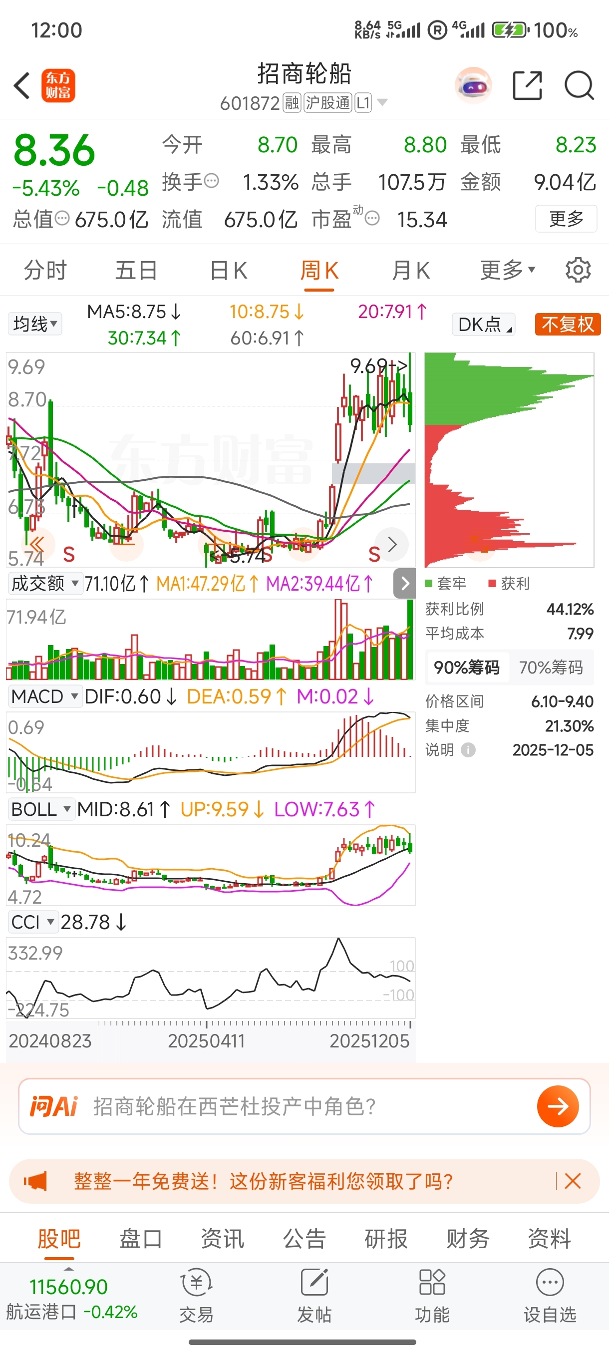 $招商轮船(SH601872)$ 好像底部筹码有一些还在,不过这只是第三季度的,第四季度就不好说了,比较现在也是历史高位