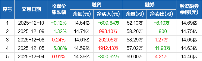 招商轮船:融资净偿还609.84万元,融资余额14.64亿元(12-10)