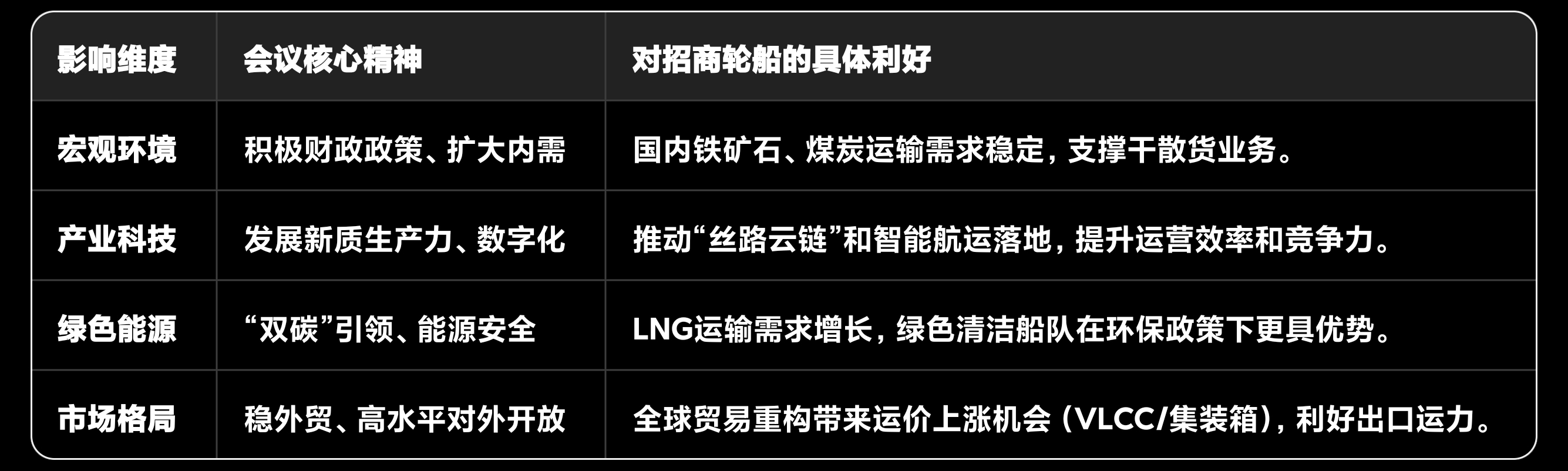 中央经济工作会议为2026年定下的“积极、创新、绿色、开放”基调,为招商轮船提供