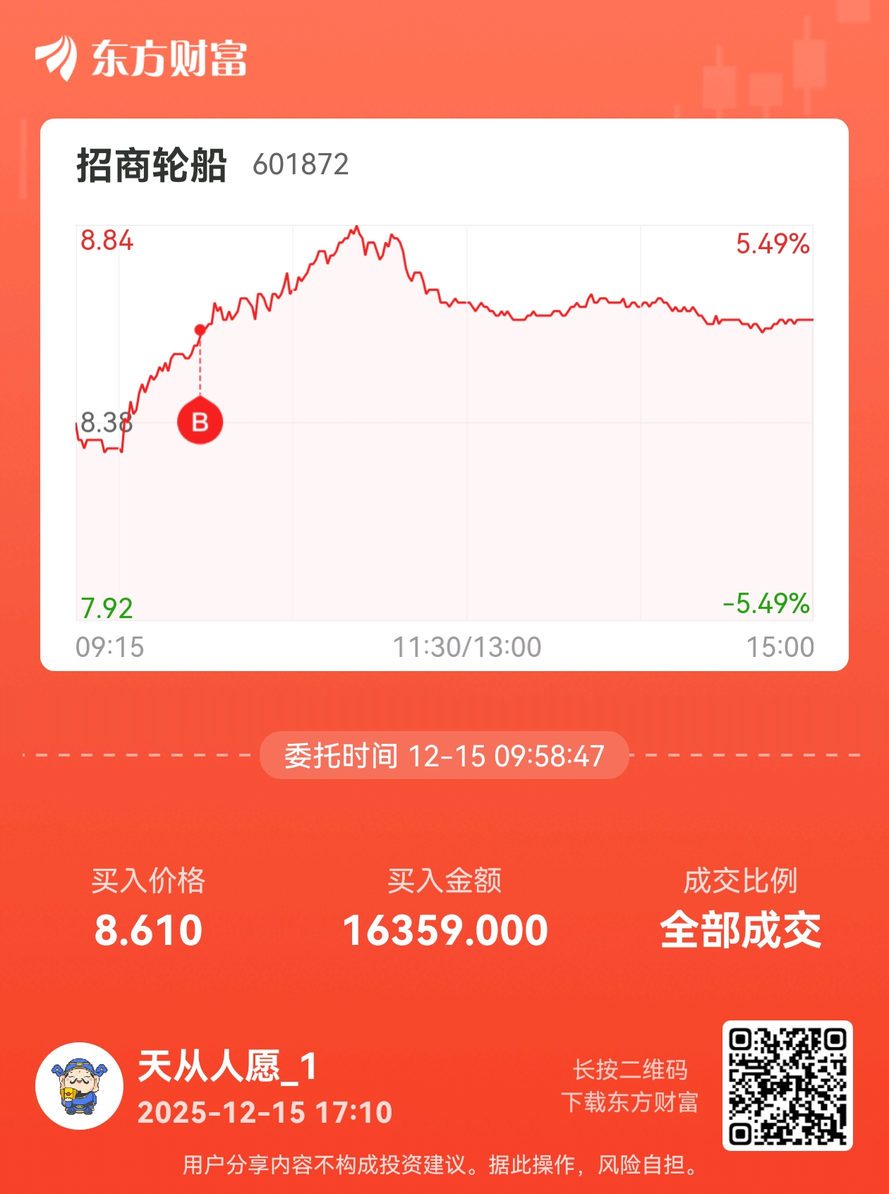 $招商轮船(SH601872)$ 能跑得掉么,想着赚个猪脚饭钱,下午怎么跳这么多