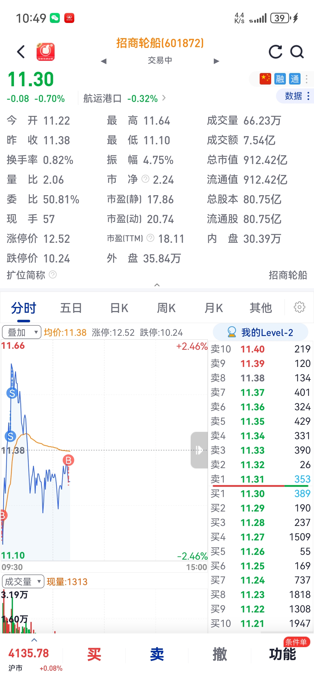 $招商轮船(SH601872)$ 大号继续格局,小号T一下赚个加餐