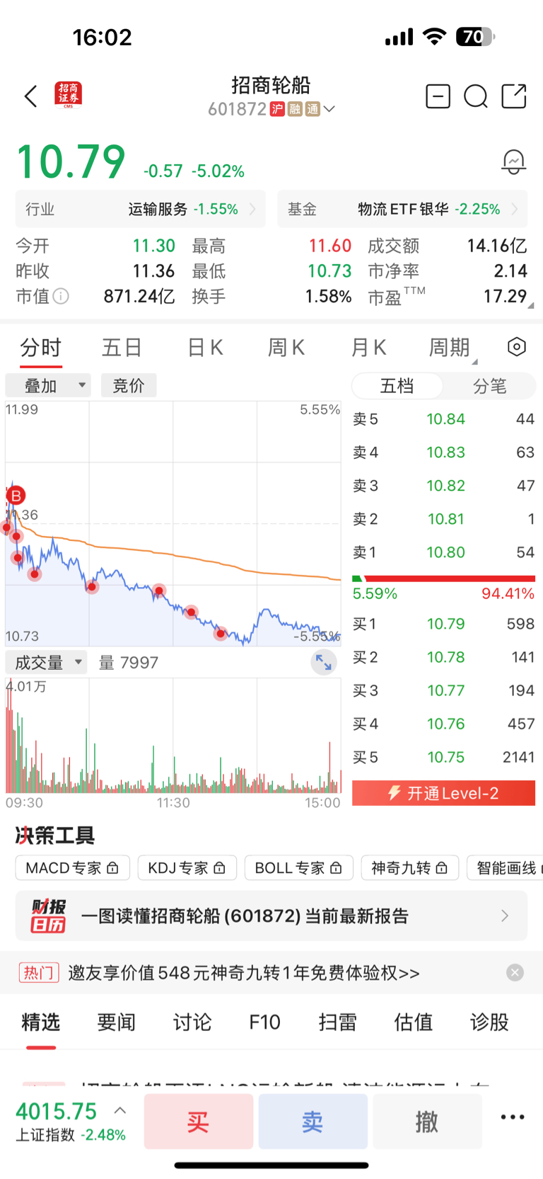 $招商轮船(SH601872)$ 明天继续买,大风大浪有筹码才稳。