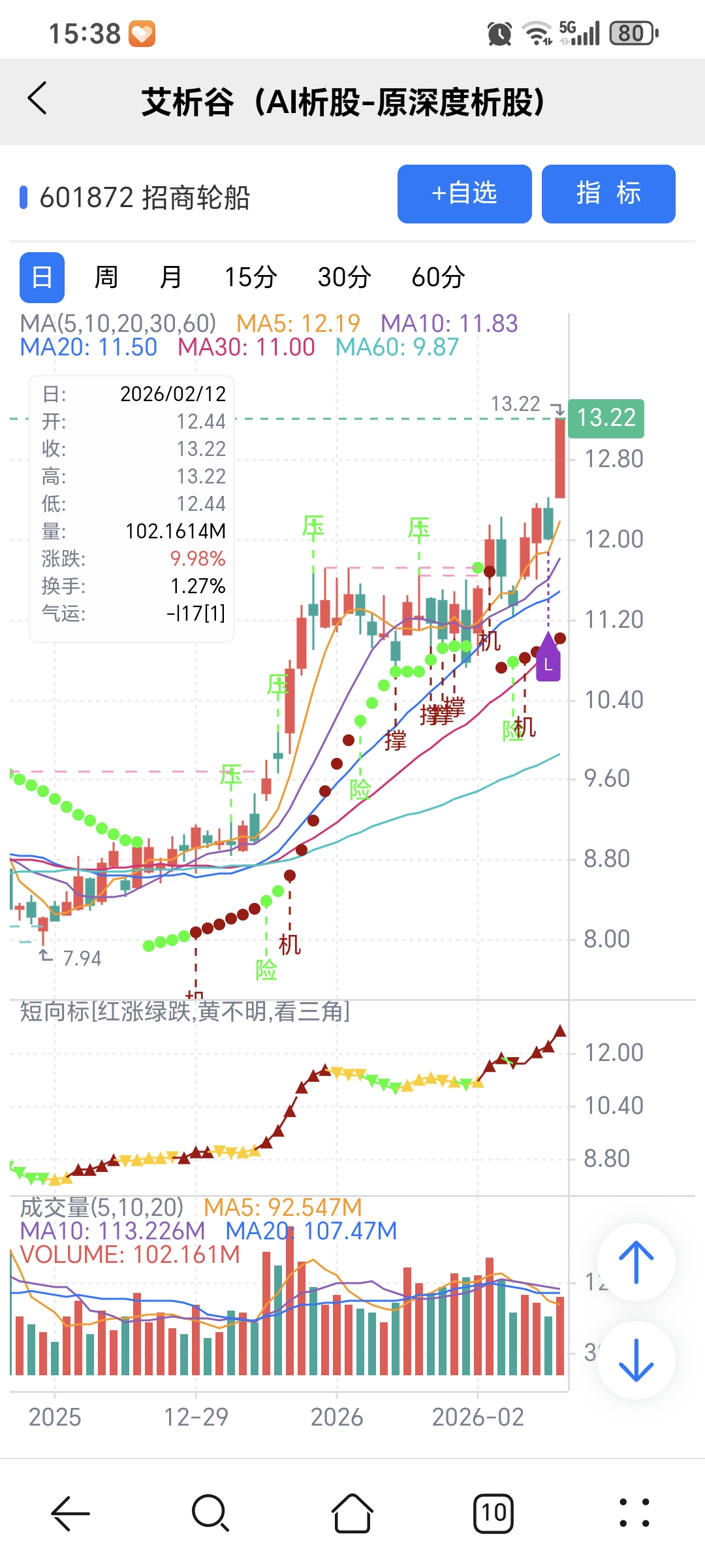 AI模型选股,量化指标识别关键点,简单技术分析确定买卖点,结合量化和人工综合运用,才能有优势。招商轮船