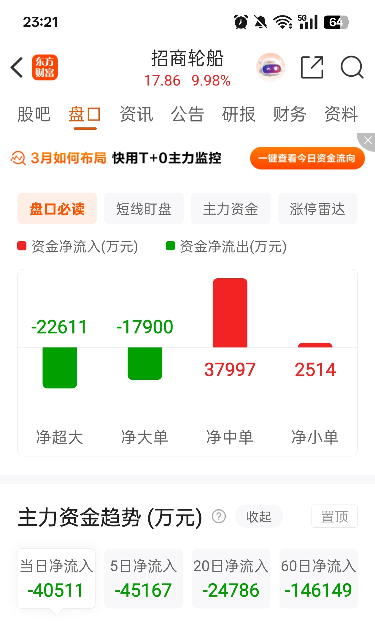 $招商轮船(SH601872)$ 今天散户是主力,我说风险容易被喷,因为大家都预期明天会涨停