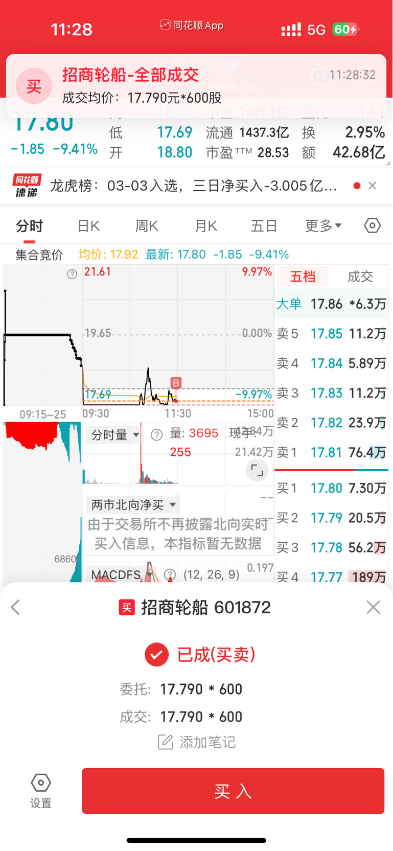 $招商轮船(SH601872)$ 我已嗦哈