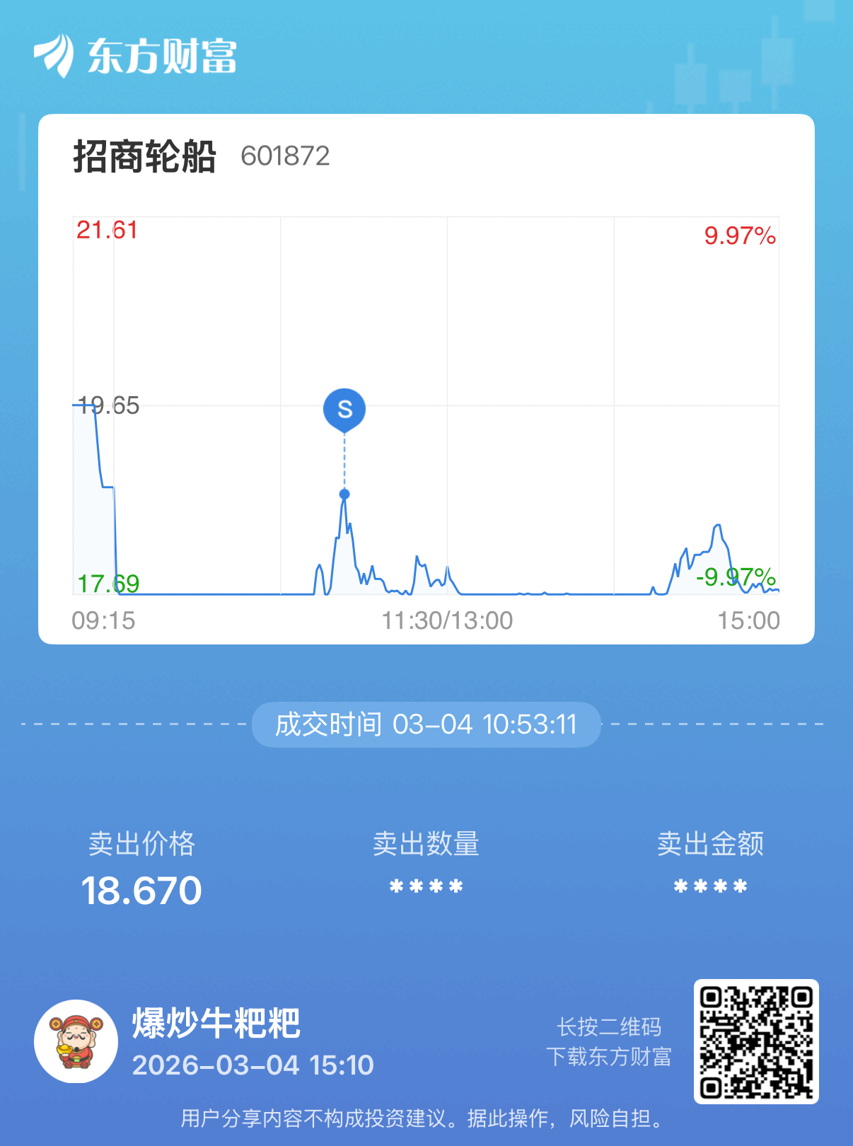 $招商轮船(SH601872)$ 今天操作极限了,还是亏钱