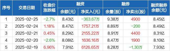 正泰电器:融资净偿还363.67万元,融资余额8.43亿元(02-25)