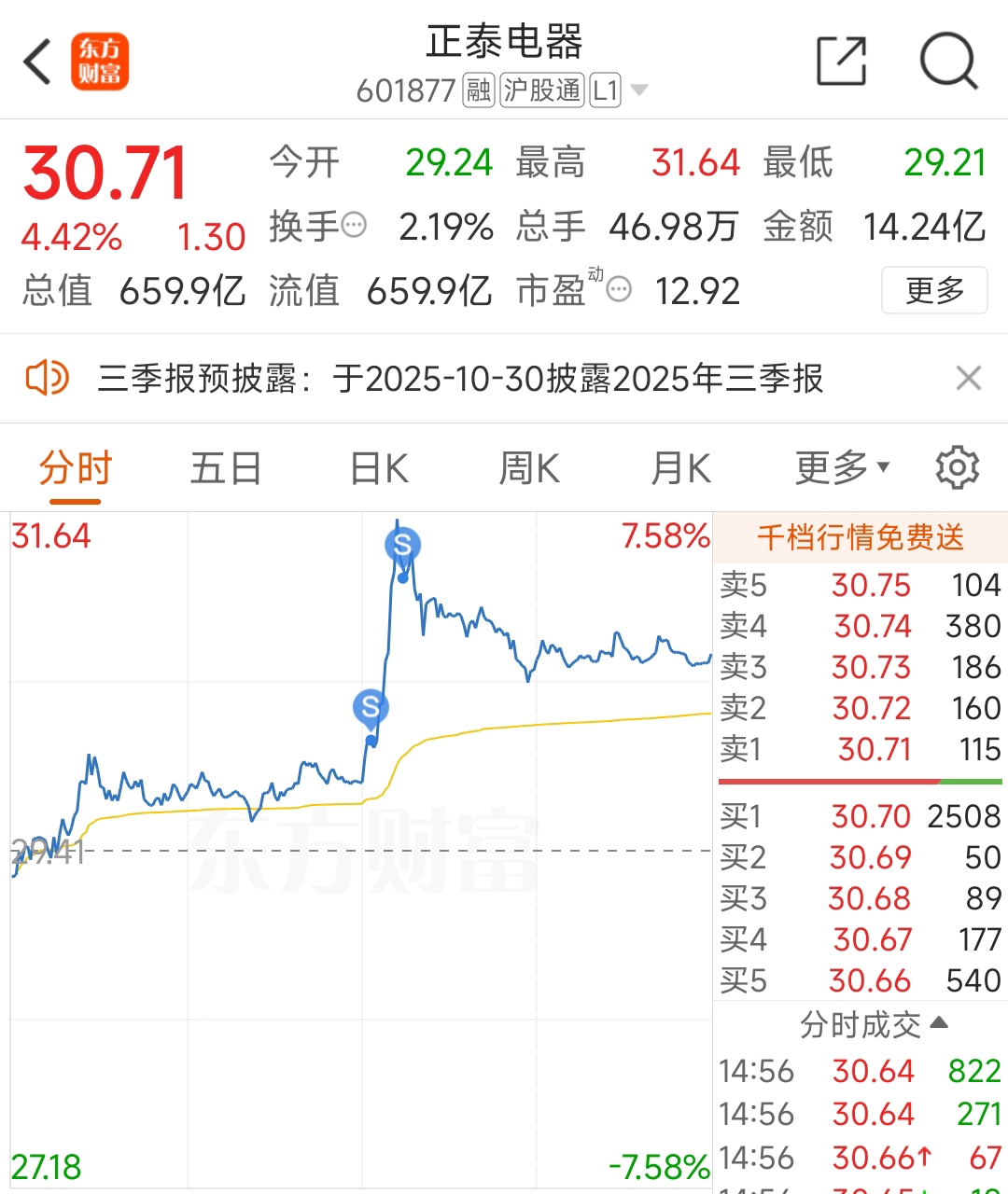 $正泰电器(SH601877)$ 翻倍定律,15.78*2=31.56,阶段性见顶,下个月开始调整!