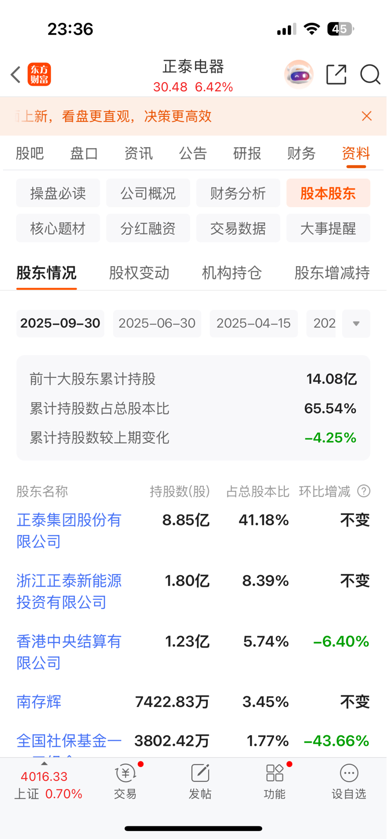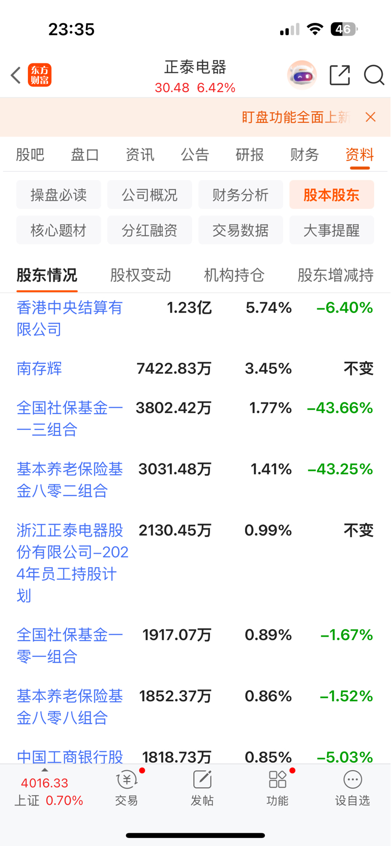 $正泰电器(SH601877)$ 公司存货占比太高、银行贷款几百亿、比24年底银行贷款又增加了21亿、四家社保养老基金+外资抛了6000多万股、难怪涨不上去、三季度扣非净利润比去年减少了百分之十三左右、明天大概率向下、业绩一般般...哎