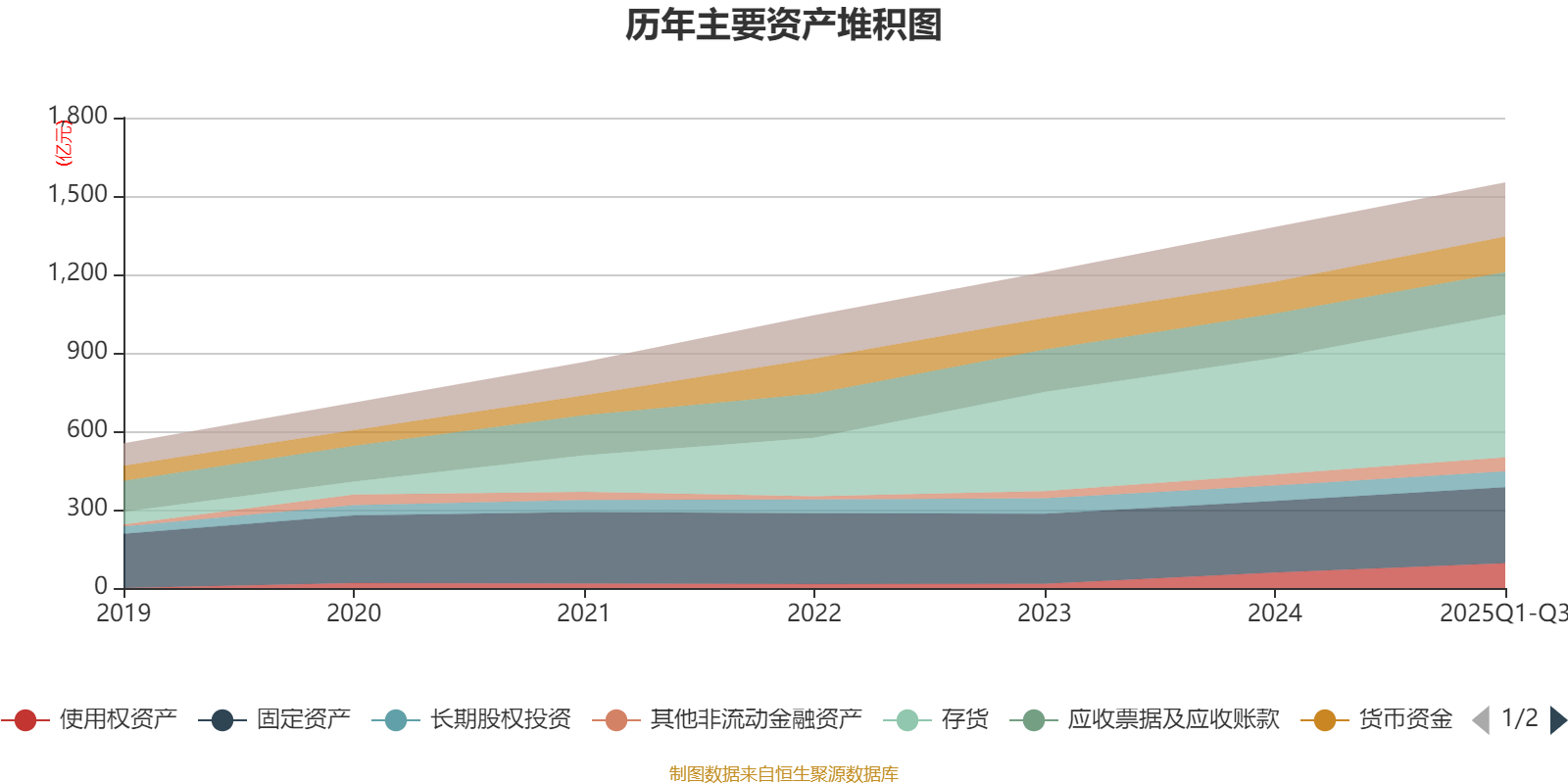 资产重大变化方面,截至2025年三季度末,公司存货较上年末增加22.59%,占公司总资产比重上升2.94个百分点;其他应收款(含利息和股利)较上年末减少67.26%,占公司总资产比重下降2.01个百分点;使用权资产较上年末增加60.47%,占公司总资产比重上升1.83个百分点;应收票据及应收账款较上年末减少4.15%,占公司总资产比重下降1.81个百分点。