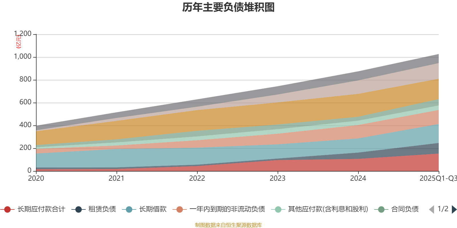 负债重大变化方面,截至2025年三季度末,公司应付票据及应付账款较上年末减少11.24%,占公司总资产比重下降3.05个百分点;长期应付款合计较上年末增加43.6%,占公司总资产比重上升2.14个百分点;租赁负债较上年末增加68.62%,占公司总资产比重上升2.01个百分点;长期借款较上年末增加33.81%,占公司总资产比重上升1.72个百分点。