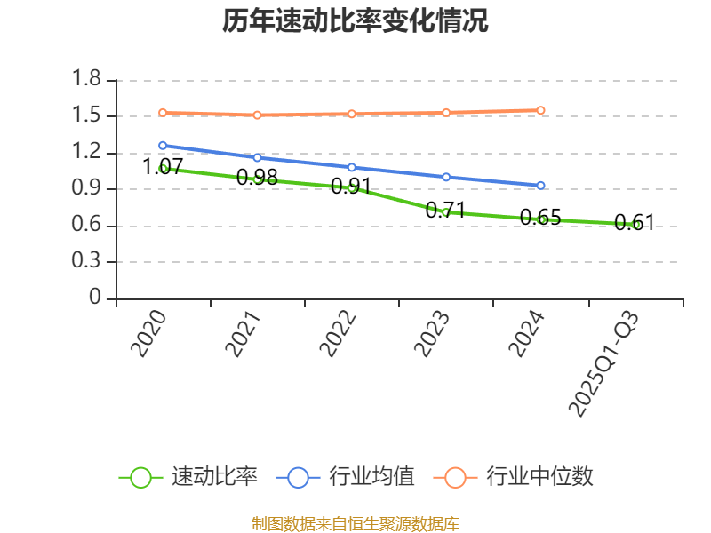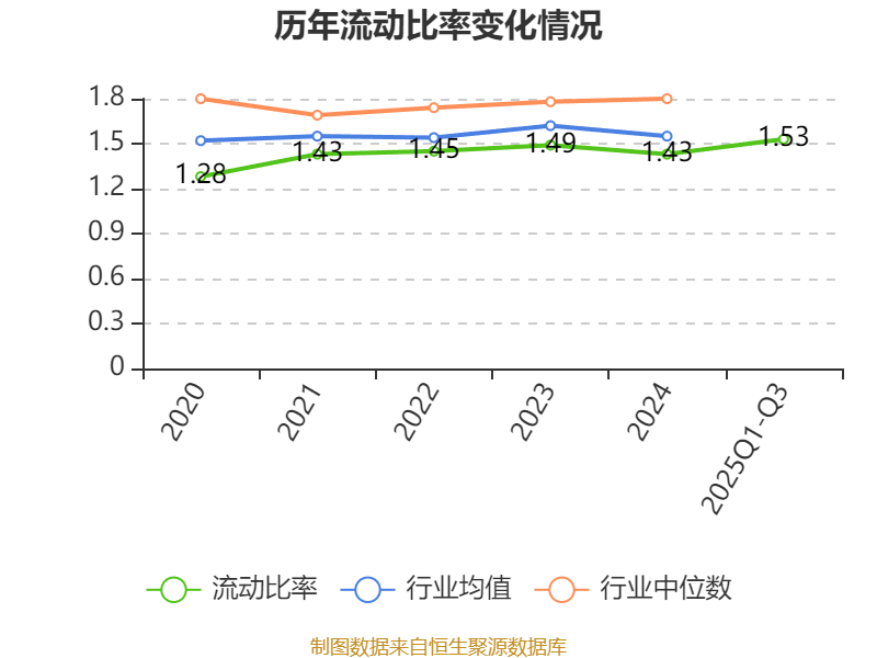 2025年前三季度,公司流动比率为1.53,速动比率为0.61。