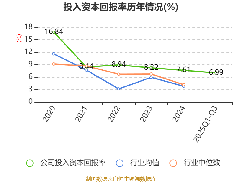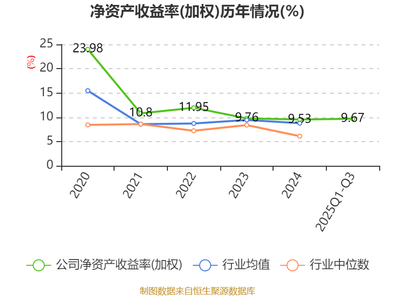 盈利能力方面, 2025年前三季度公司加权平均净资产收益率为9.67%,同比上升1.07个百分点。公司2025年前三季度投入资本回报率为6.99%,较上年同期上升0.36个百分点。